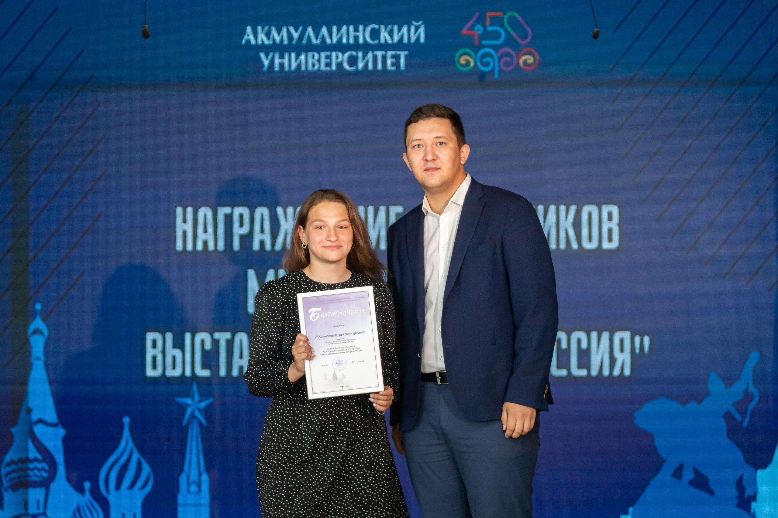 С 26 по 28 марта Акмуллинский университет во второй раз принял участие в Международной выставке-форуме «Россия» на ВДНХ в Москве. Там университет представил насыщенную программу, включавшую  мастер-классы и лекции для посетителей экспозиции Министерства просвещения Российской Федерации. Преподавателям, сотрудникам и студентам вуза, участвовавшим в экспозиции университета на выставке, благодарственные письма вручил директор департамента по воспитательной работе и молодежной политике Вильдан Исянгильдин.