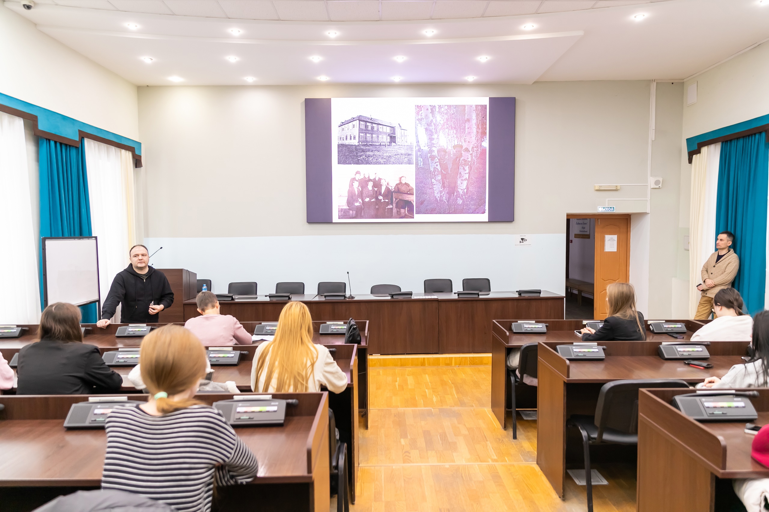Алексей Стецюк в своём выступлении отметил важность связи регионов, народов России и поколений для сохранения исторической памяти. Николай Каташов рассказал студентам о работе творческой группы по созданию фильмов проекта «Истории забытых деревень».