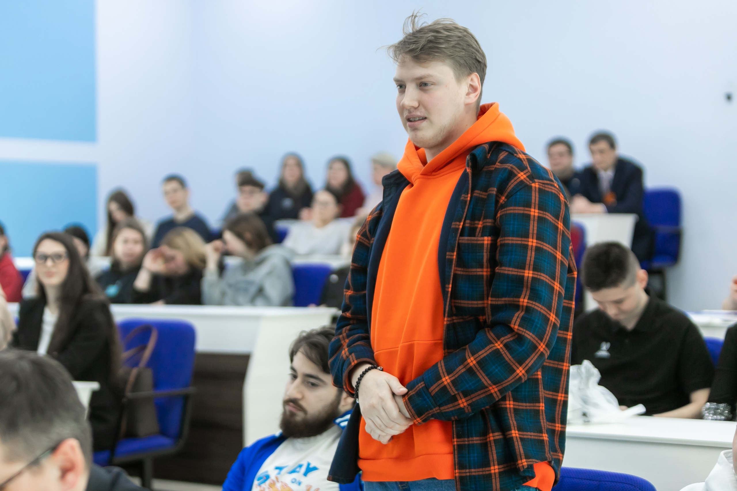 Студенты задавали руководителю университета много вопросов: о любимых видах спорта и детской мечте, о том, какими качествами должен обладать учитель и может ли его заменить искусственный интеллект, о поддержке студенческих инициатив, научных исследований и публикаций, новых образовательных программах и обучении жестовому языку выпускников, планирующих работать в коррекционных школах, о наболевшем ремонте в общежитиях. Конечно, много говорили о помощи студенческим командам по разным видам спорта.