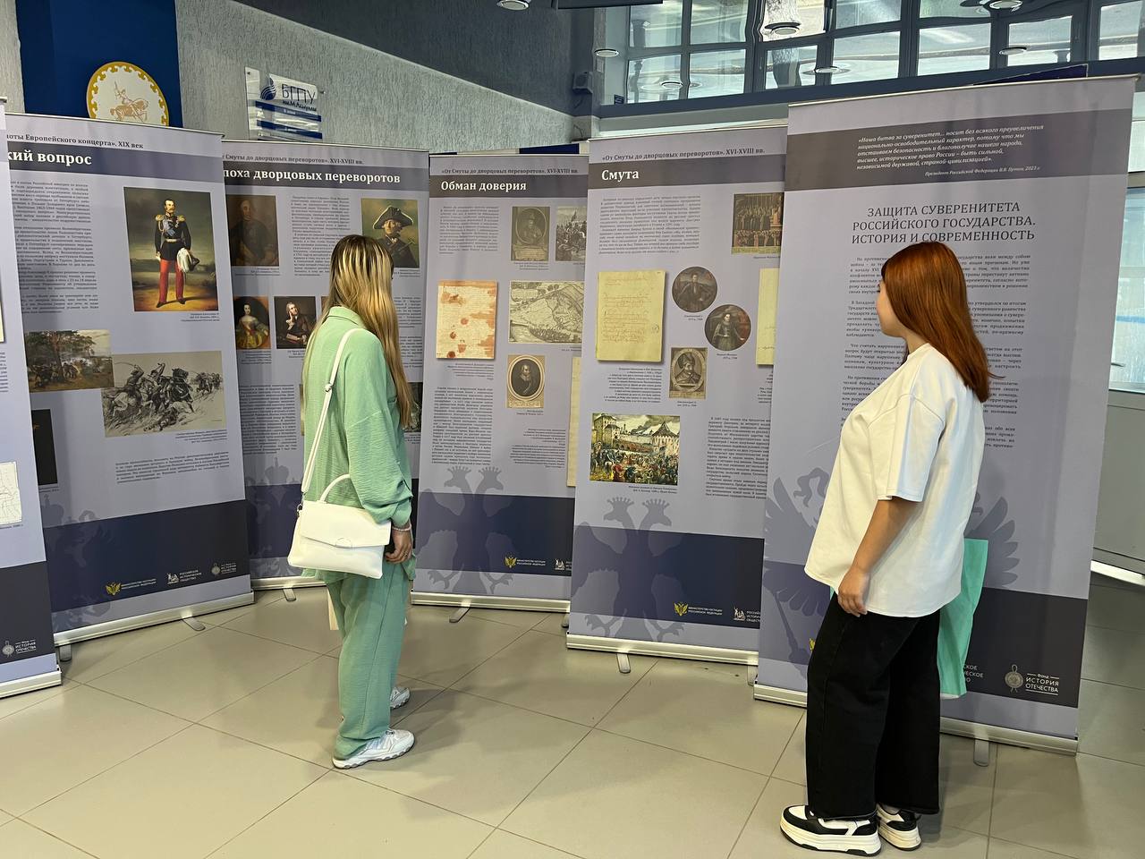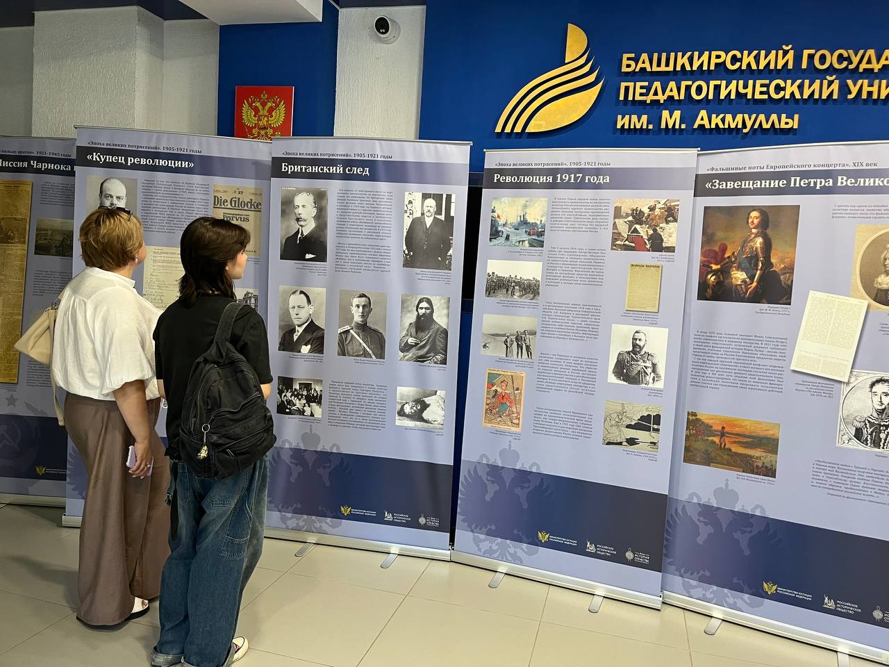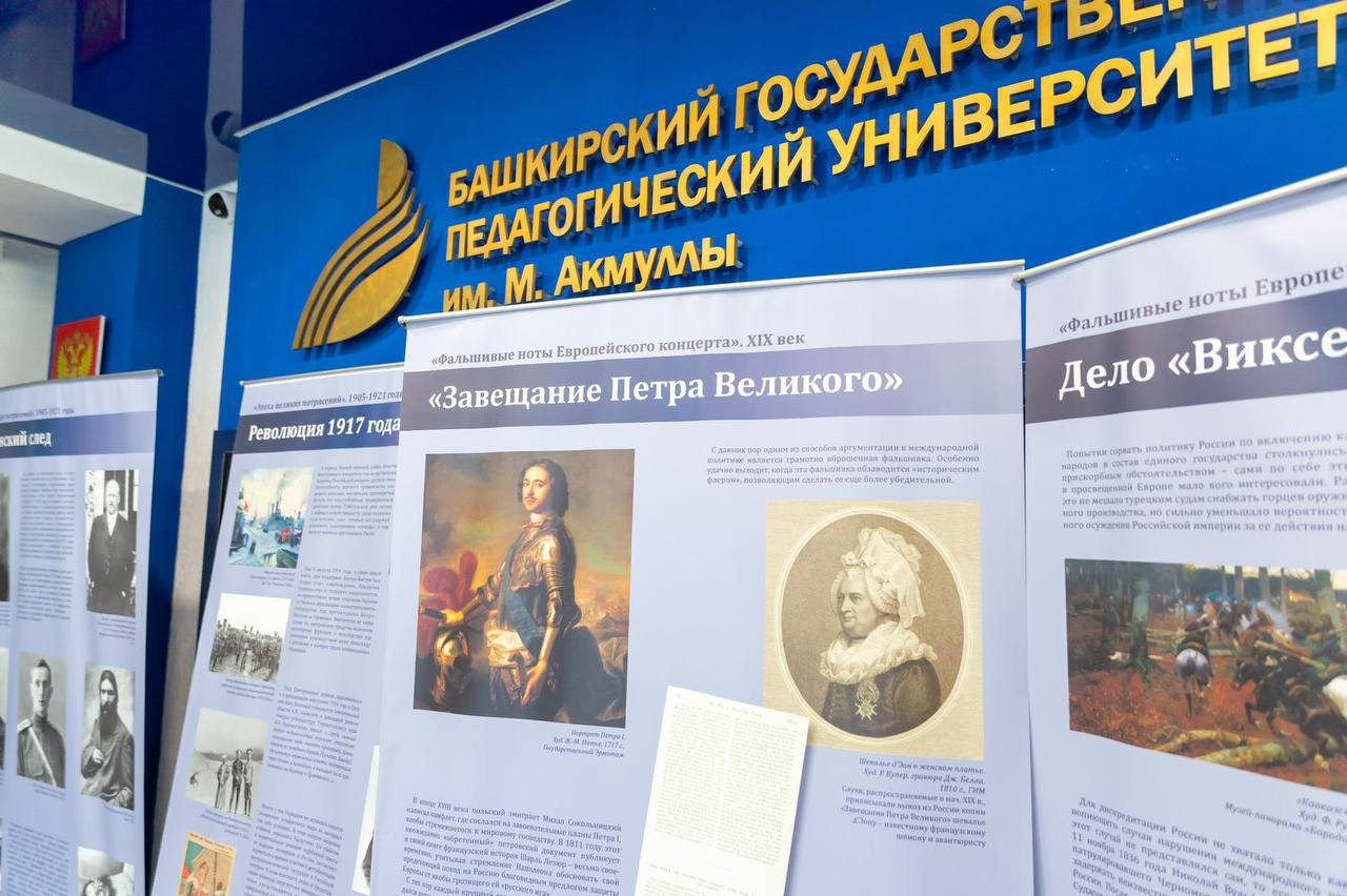 С 14 по 18 июля в фойе второго корпуса Башкирского государственного педагогического университета им. М. Акмуллы работает историко-правовая выставка «Защита суверенитета Российского государства. История и современность». Экспозиция организована Управлением Министерства юстиции России по Республике Башкортостан при поддержке Департамента по воспитательной работе и молодежной политике  Акмуллинского университета.