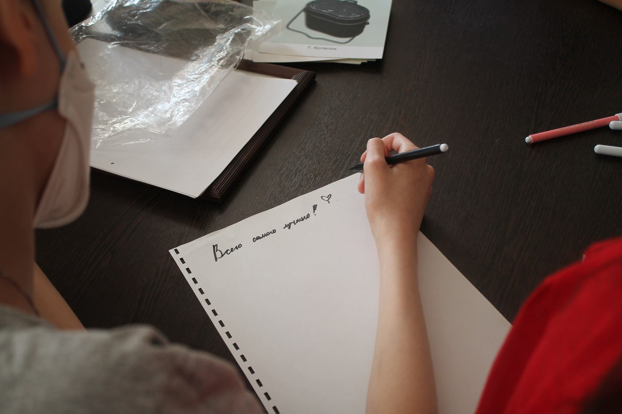 Юные участники игры, закрыв глаза, определяли предметы, вспоминали стихи и песни Великой Отечественной войне, а также смогли написать письма-треугольники.