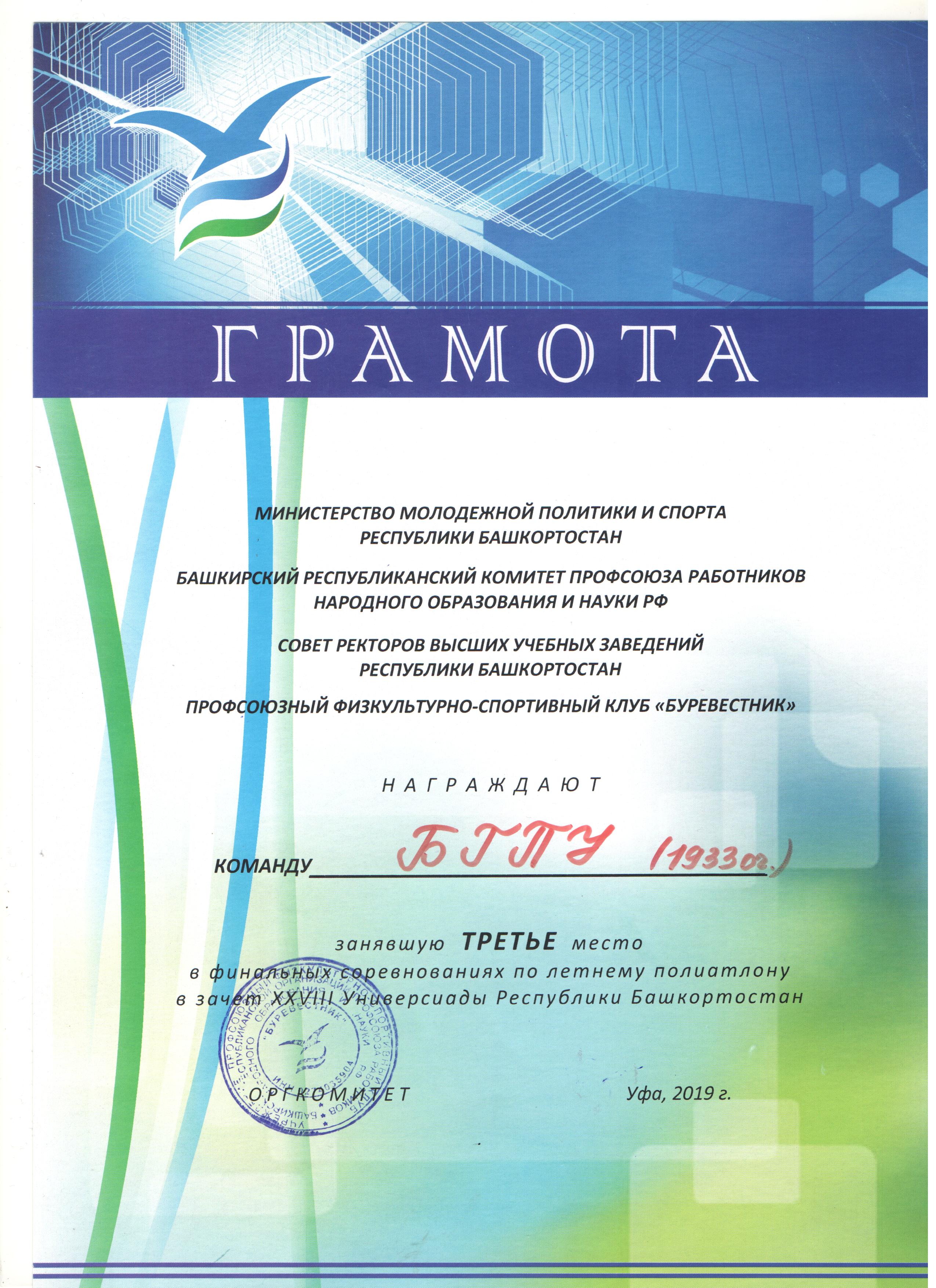 Команда БГПУ им. М. Акмуллы завоевала "бронзу" в летнем полиатлоне