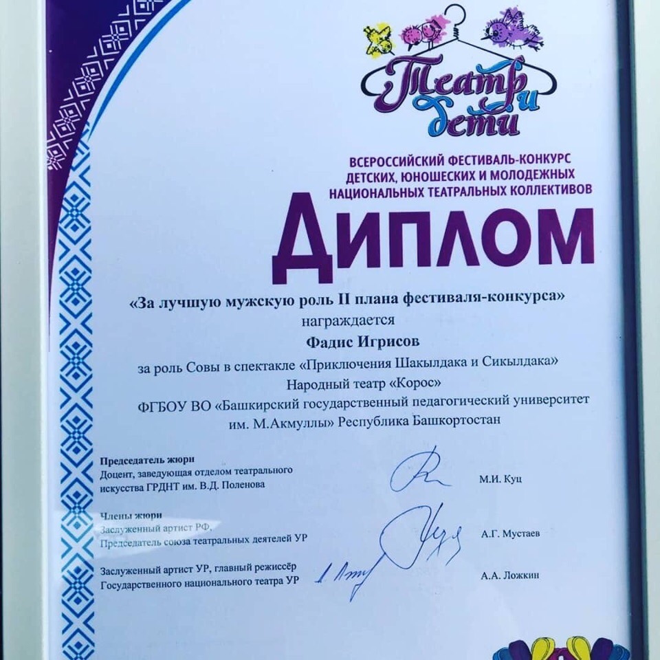 - диплом в номинации «За лучшую мужскую роль второго плана» (Ф. Идрисов);