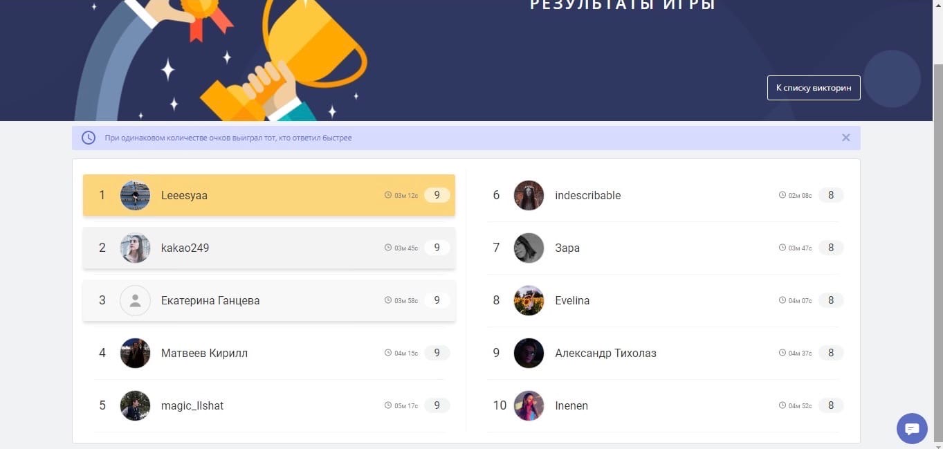 Для закрепления знаний, среди студентов университета был проведён интеллектуально - образовательный квиз, который проходил на платформе MyQuiz.