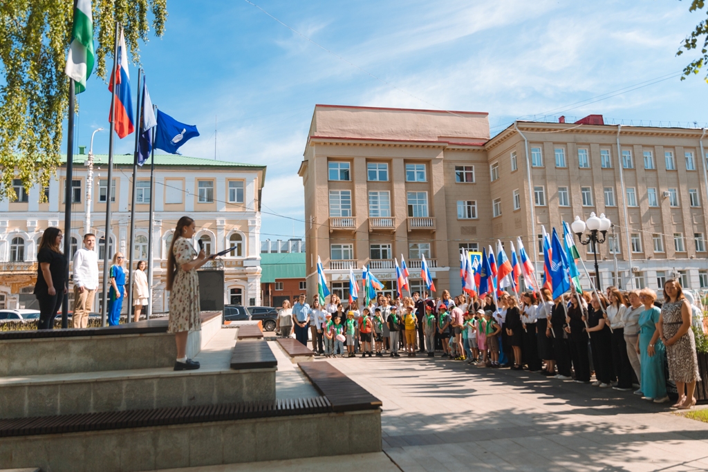 В честь Дня России в Акмуллинском университете состоялась особенная торжественная церемония поднятия флагов. В ней приняли участие студенты и преподаватели университета, а также школьники Уфы, посещающие летнюю «Акмуллинскую академию».