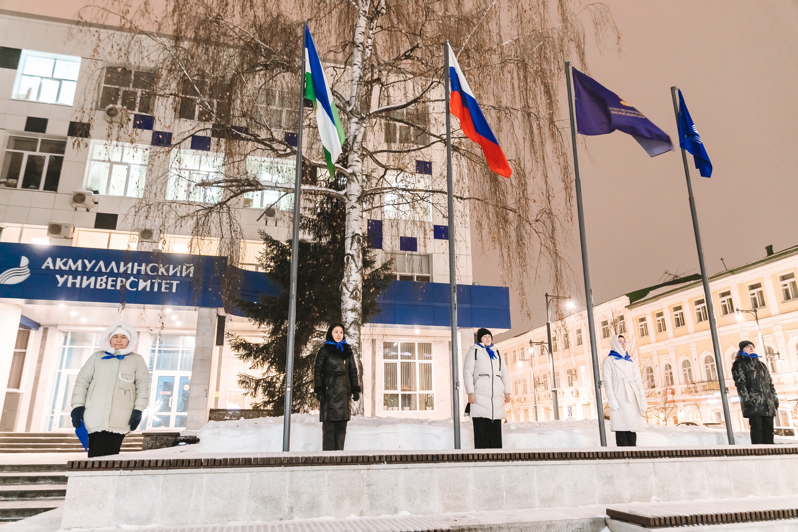 27 января в Акмуллинском университете состоялась традиционная еженедельная церемония поднятия флагов. В ней приняли участие преподаватели и студенты Института педагогики.