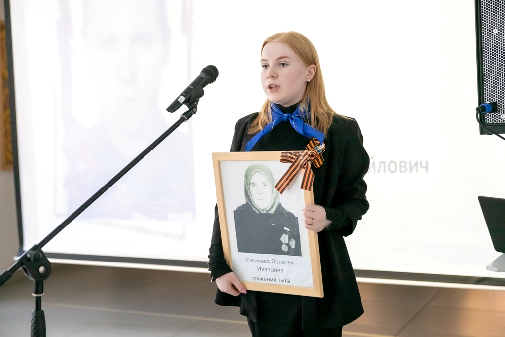 «Я сегодня хотела бы рассказать о своей прабабушке. Она также является ветераном Великой Отечественной войны, она была тружеником тыла и матерью-героиней, так как она родила, вырастила пять детей во время Великой Отечественной войны. И у неё есть две награды: за доблестный труд во время Великой Отечественной войны и «Мать-героиня». Я думаю, что это обязательно нужно знать, потому что это наша история. И от того, помним ли мы ее, зависит наше будущее», – отметила Екатерина Гудыменко, студентка Института филологического образования и межкультурных коммуникаций.