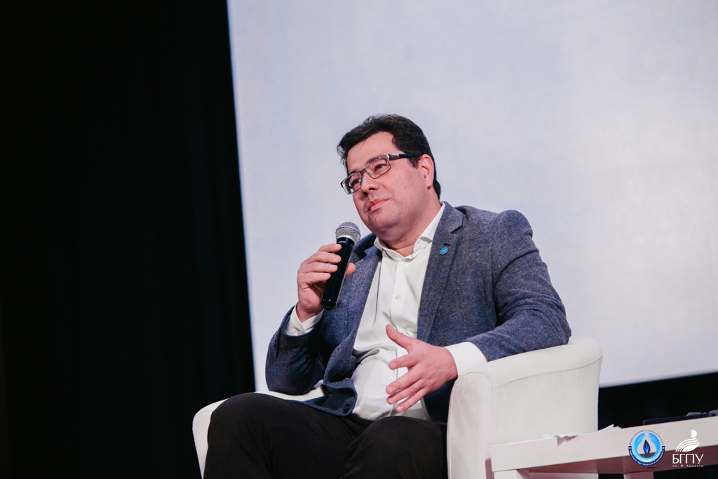 После состоялась первая визионерская лекция, её прочитал ректор БГПУ им. М. Акмуллы Салават Сагитов. Он рассказал ребятам об основных принципах управления и ответил на многочисленные вопросы.