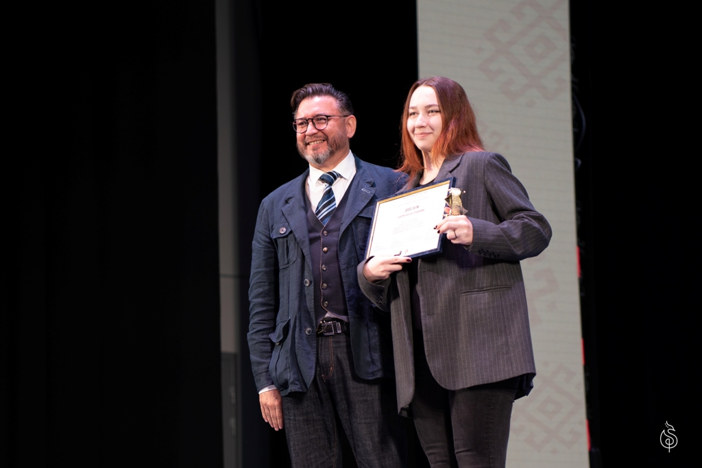 Магистрант ИФОМК Юлия Шабалина получили награду за лучшую главную женскую роль, она исполнила роль Искры в спектакле «Завтра была война».