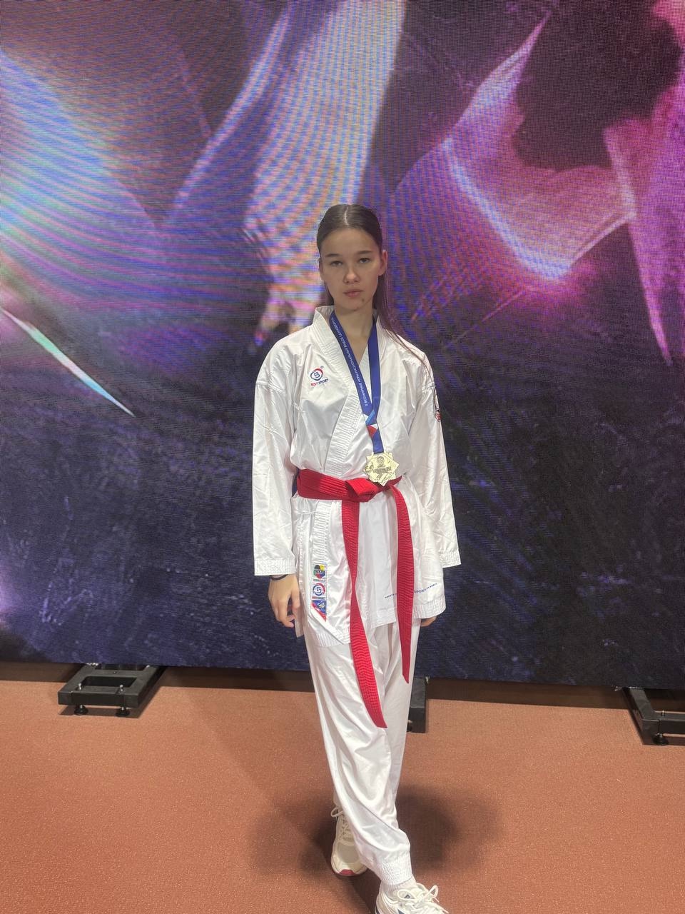 Студентка Акмуллинского университета Бикмухаметова Дана заняла 3 место на открытом Чемпионате мира в дисциплине кумитэ 18+ в весовой категории до 55 кг.