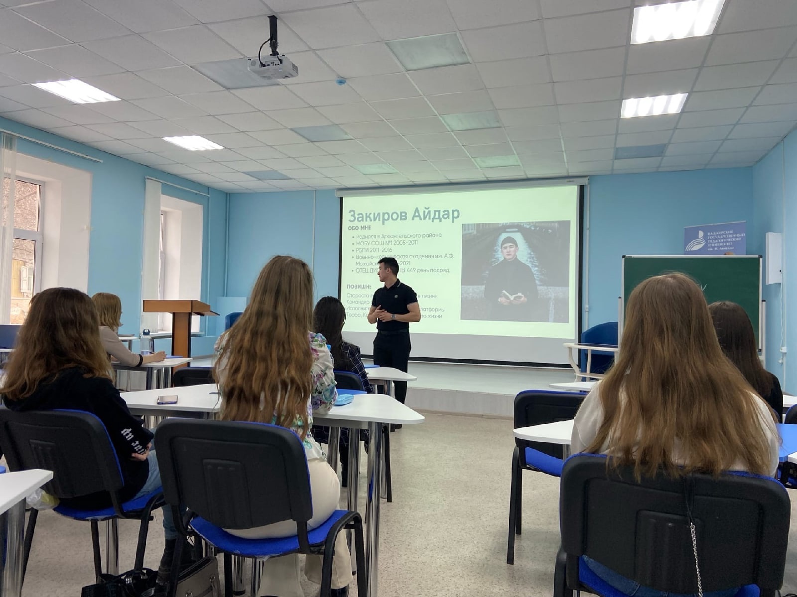 04 апреля 2022 года в Институте исторического, правового и социально-гуманитарного образования БГПУ им.М.Акмуллы в рамках профориентации и по приглашению студентов института состоялся мастер-класс и тренинг, направленный на развитие личностной мотивации и профессионального роста. Провел данный тренинг Айдар Закиров – серийный предприниматель, коуч, исполнительный директор международной благотворительной IT-платформы Tooba, основатель бегового клуба “The100”, клуба "Пробуждение”, блогер и так называемый “Отец дисциплины”.