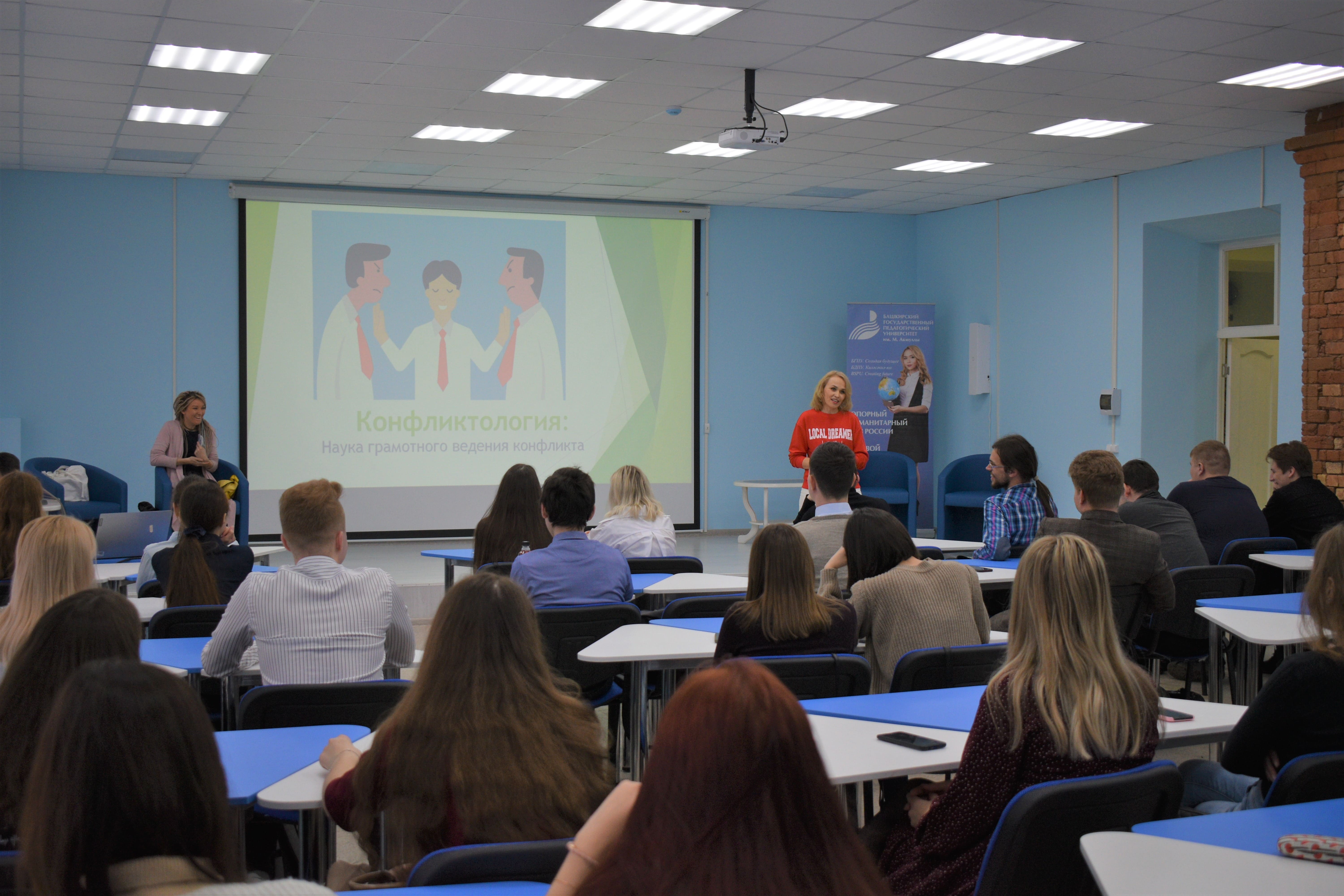 Приглашенным спикером также выступила Ихсанова Люция Хайдаровна, психолог и специалист в науке взаимоотношений с лекцией на тему «Конфликт – это хорошо или плохо? «Грамотная конфликтология».  Студенты узнали главные правила адаптации в коллективе и основы корпоративной культуры предприятия.