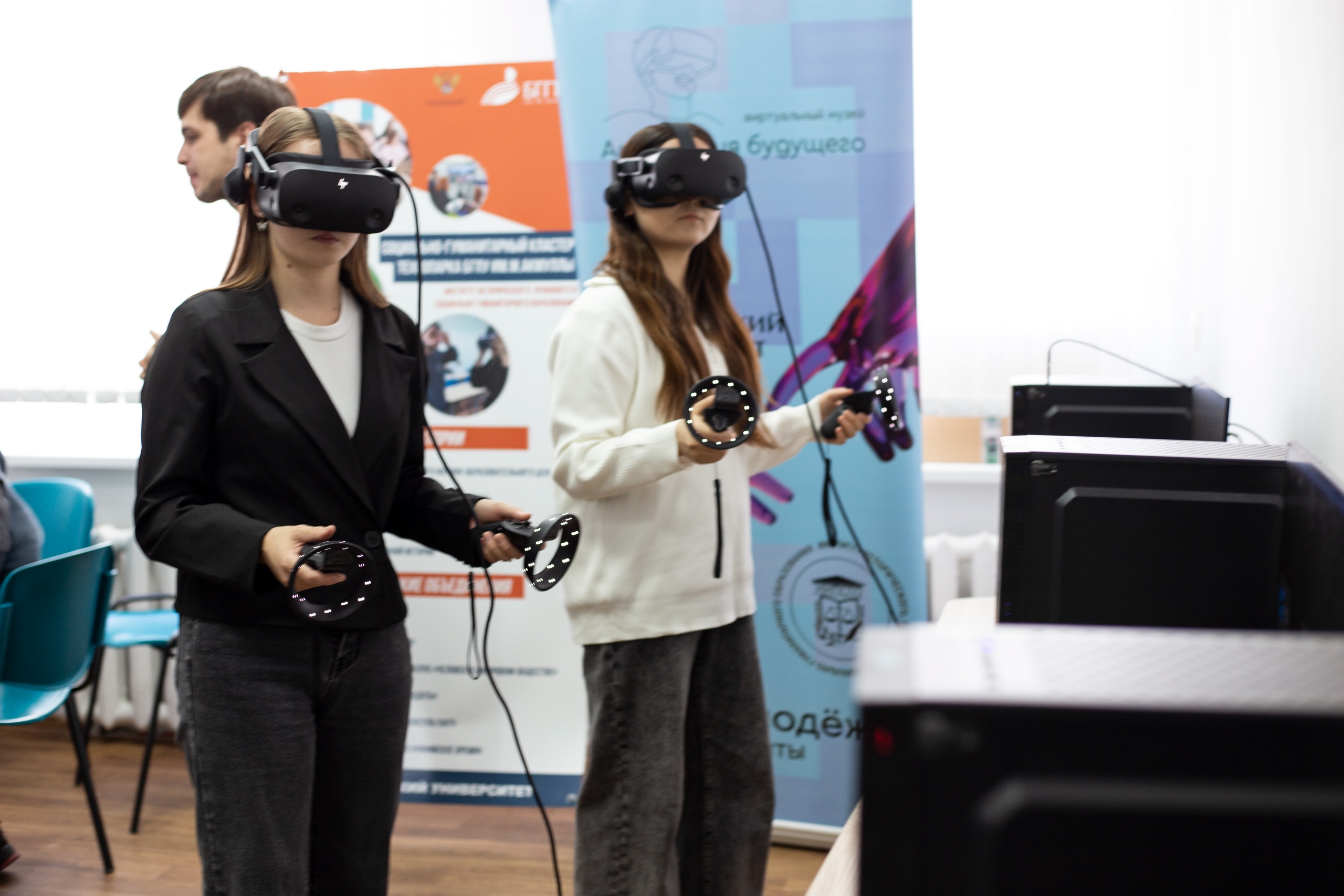 Магистрант ИИСПГО Глеб Луц рассказал школьникам о виртуальном археологическом музее, созданном студентами и преподавателями института при помощи гранта Росмолодежи. Благодаря специальной программе и VR-очкам ребята смогли побывать на археологических раскопках, которые проходили на улице Октябрьской революции, прямо рядом с университетским корпусом, и посмотреть на найденные артефакты.