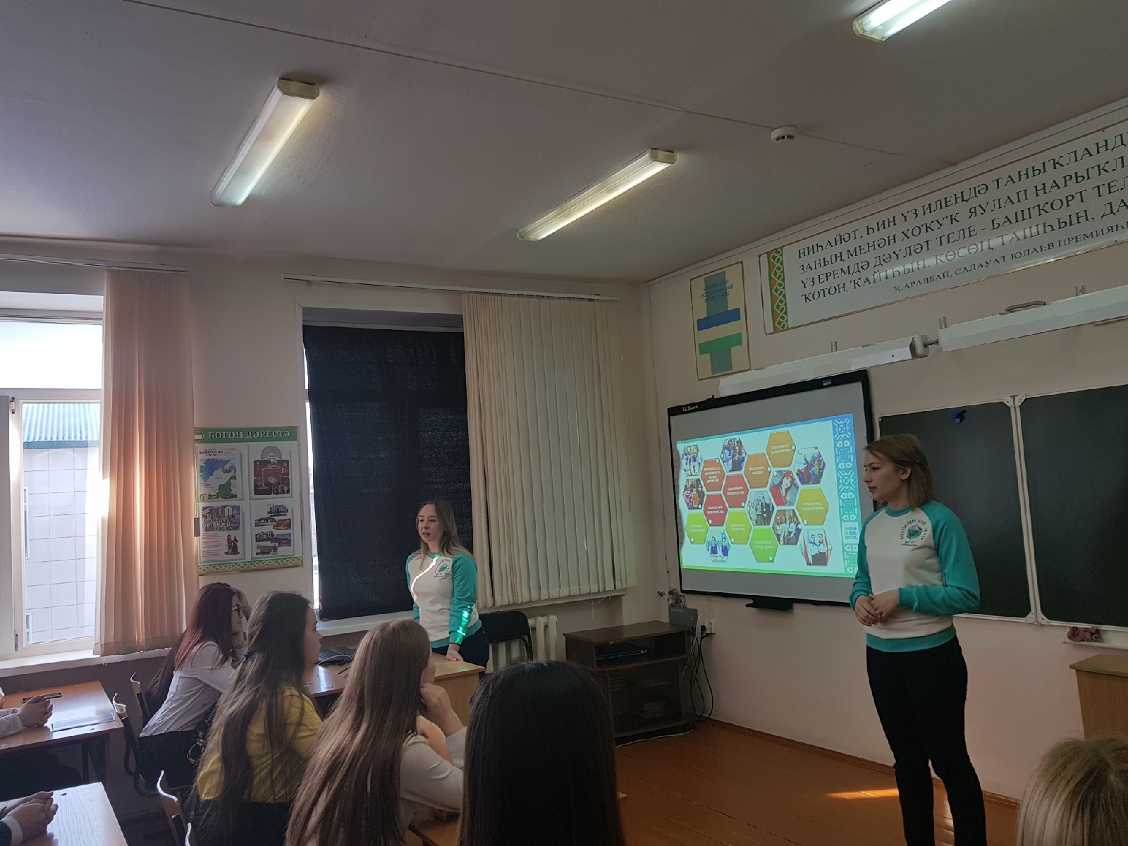 В поездке приняли участие волонтеры БГПУ им. М. Акмыллы. Они провели для учащихся школ уроки добра и мужества. И впервые себя показали волонтеры профориентации. Они рассказали детям о том, какие профессии будут востребованы в будущем и дали советы о том, как сделать правильный выбор профессии.