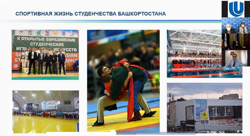 Председатель Совета ректоров вузов Республики Башкортостан, ректор Башкирского государственного педагогического университета им. М. Акмуллы Сагитов Салават Талгатович выступил с докладом о состоянии студенческого спорта в Республике Башкортостан. На сегодняшний день на территории республики ведется активная работа четырех спортивных студенческих клубов: ССК «Арслан» (Башкирский государственный педагогический университет им. М. Акмуллы), ССК «Нефтяник» (Уфимский государственный нефтяной технический  университет), ССК «Толпар» (Башкирский государственный аграрный университет) и ССК «Авиатор» (Уфимский государственный авиационный технический  университет).