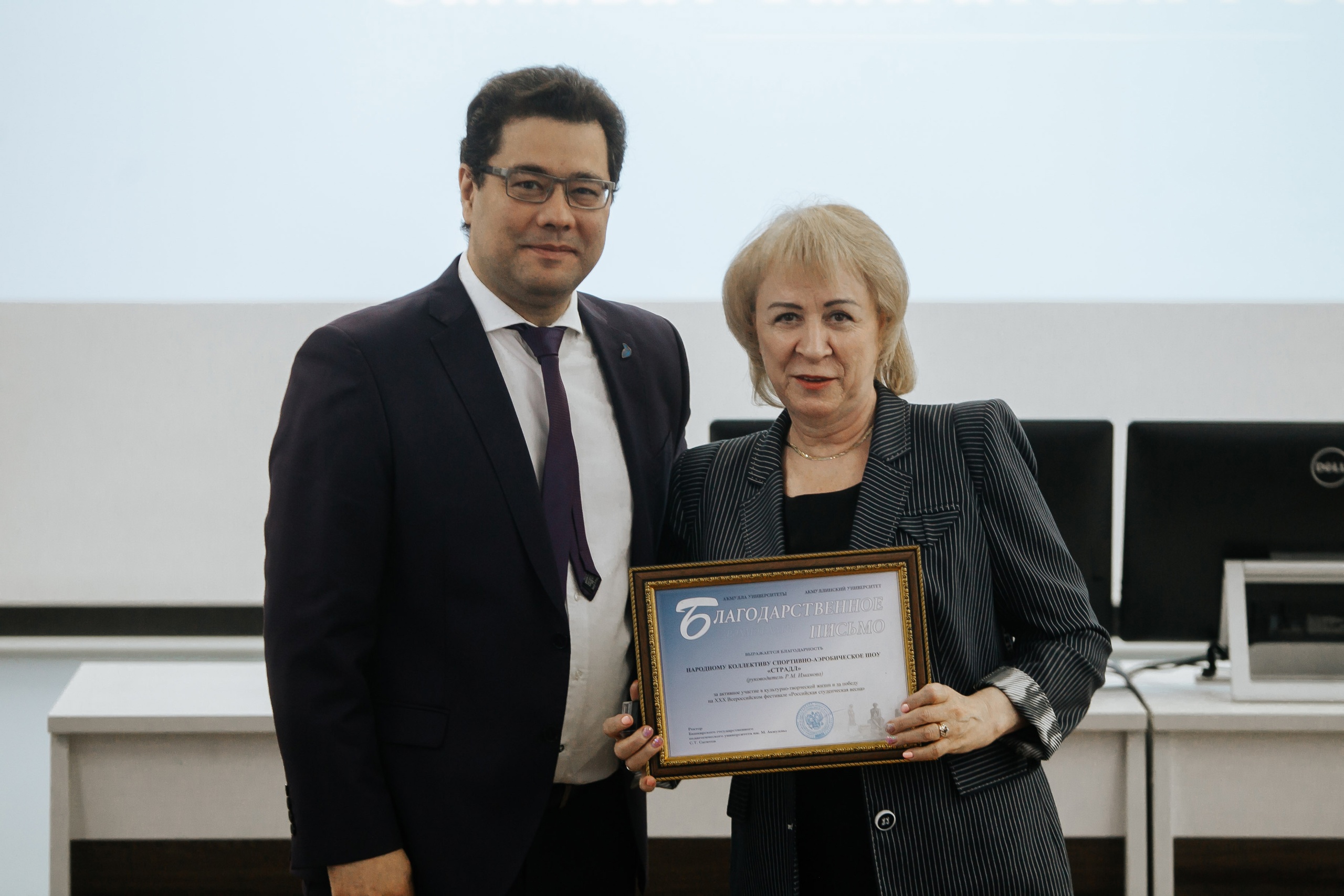 Также Салават Талгатович вручил Благодарственные письма Акмуллинского университета за активное участие в культурно-творческой жизни и за победу на ХХХ Всероссийском фестивале «Российская студенческая весна» руководителю  народного коллектива спортивно-аэробическое шоу «Страдл» Римме Имамовой и студентке института педагогики Алисе Мухамедьяновой.