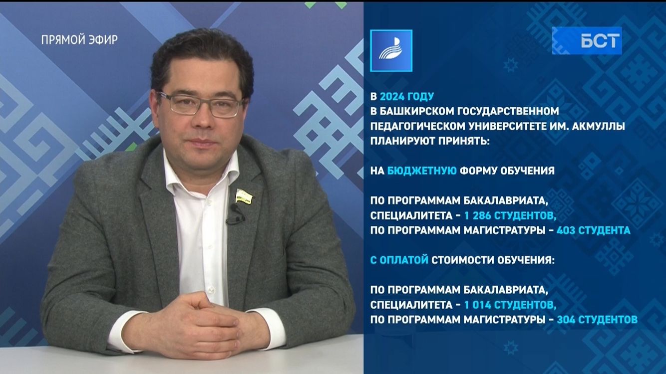 Что ждёт абитуриентов в 2024 году, как правильно подать документы, как будут распределяться бюджетные места, есть ли льготы для будущих студентов и возможно ли пройти стажировку в ведомствах республики? На эти и другие вопросы, интересующие абитуриентов и их родителей, на брифинге в прямом эфире телеканала БСТ ответили министр образования Республики Башкортостан Ильдар Мавлетбердин, ректоры башкирских вузов, директор управляющей компании Евразийского НОЦ Наталья Латыпова.