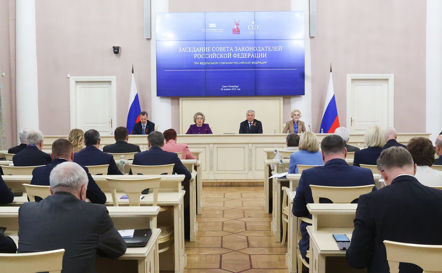 В Таврическом дворце Санкт-Петербурга состоялось XXIII заседание Совета законодателей Российской Федерации при Федеральном Собрании РФ. Его провели Председатель Совета Федерации Валентина Матвиенко и Председатель Государственной Думы Вячеслав Володин. В мероприятии принял участие министр просвещения РФ Сергей Кравцов.