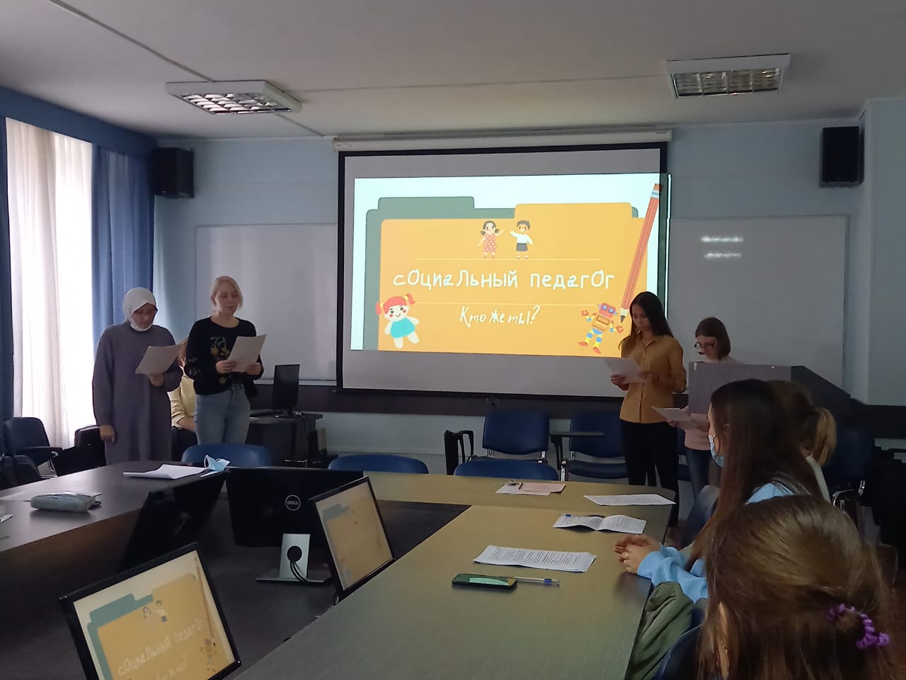Первокурсники заранее подготовили небольшие выступления на тему «Профессия социального педагога». Каждая команда старалась интересно раскрыть важную роль этой профессии в обществе, а также продемонстрировать свои ораторские способности.