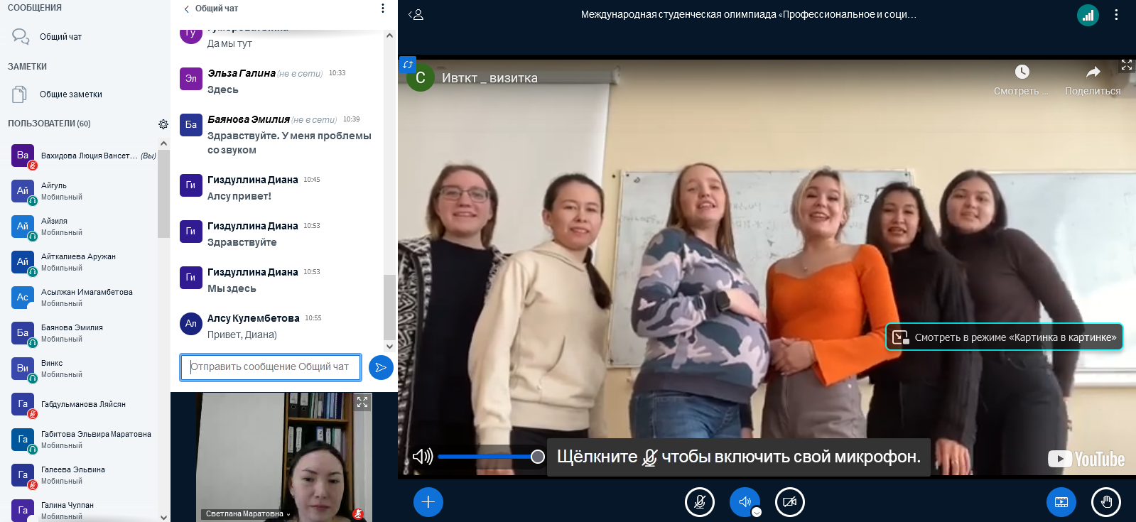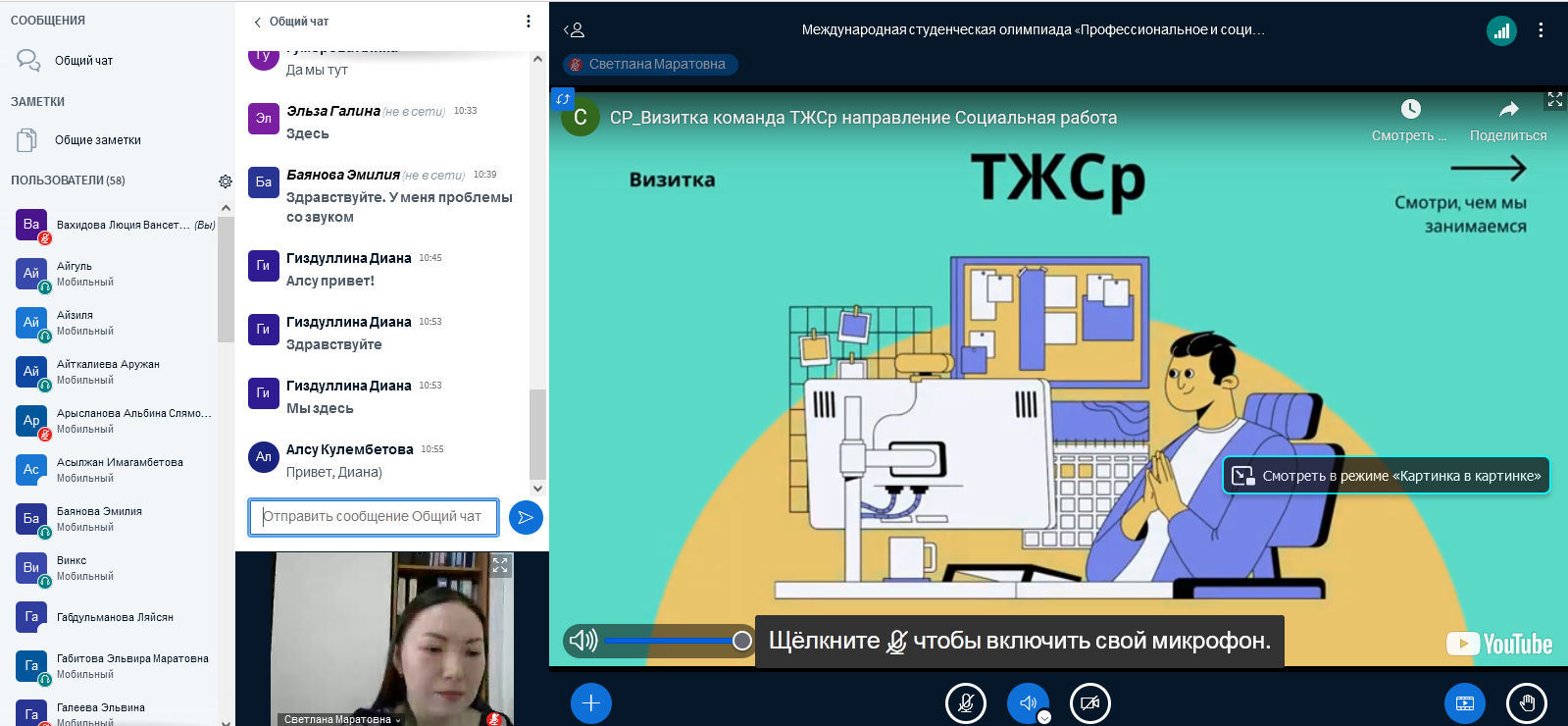 -    студентка 3 курса по направлению «Педагогика и психология» (Актюбинский университет им. С. Баишева): Муталиефова Жанна Русланқызы.