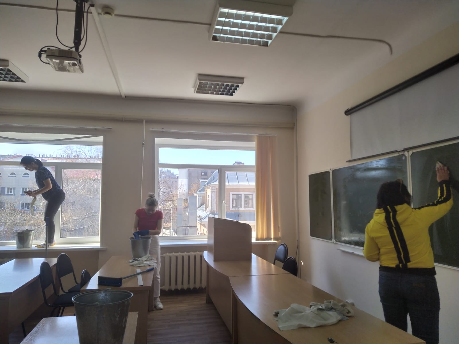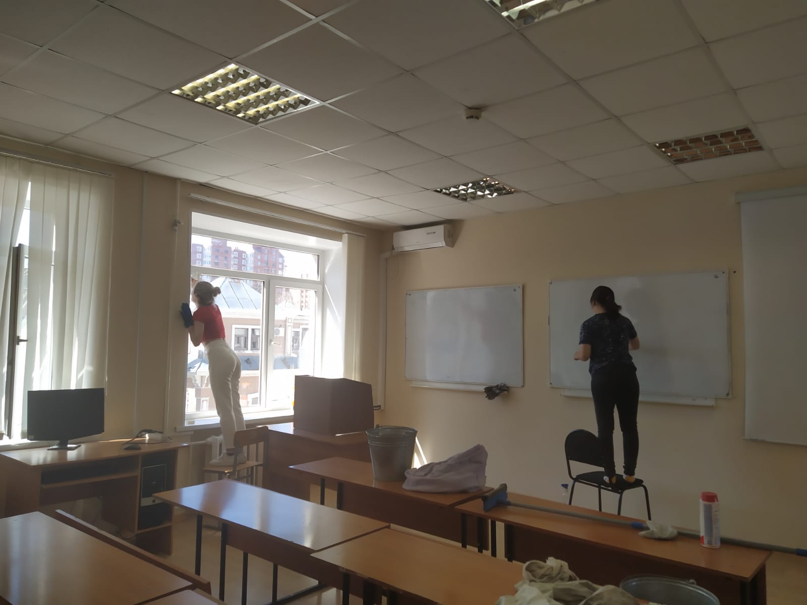 Благодаря теплой и солнечной погоде, хорошему и веселому настроению, ребята смогли сделать учебные аудитории и территорию уютной, красивой, и чистой.