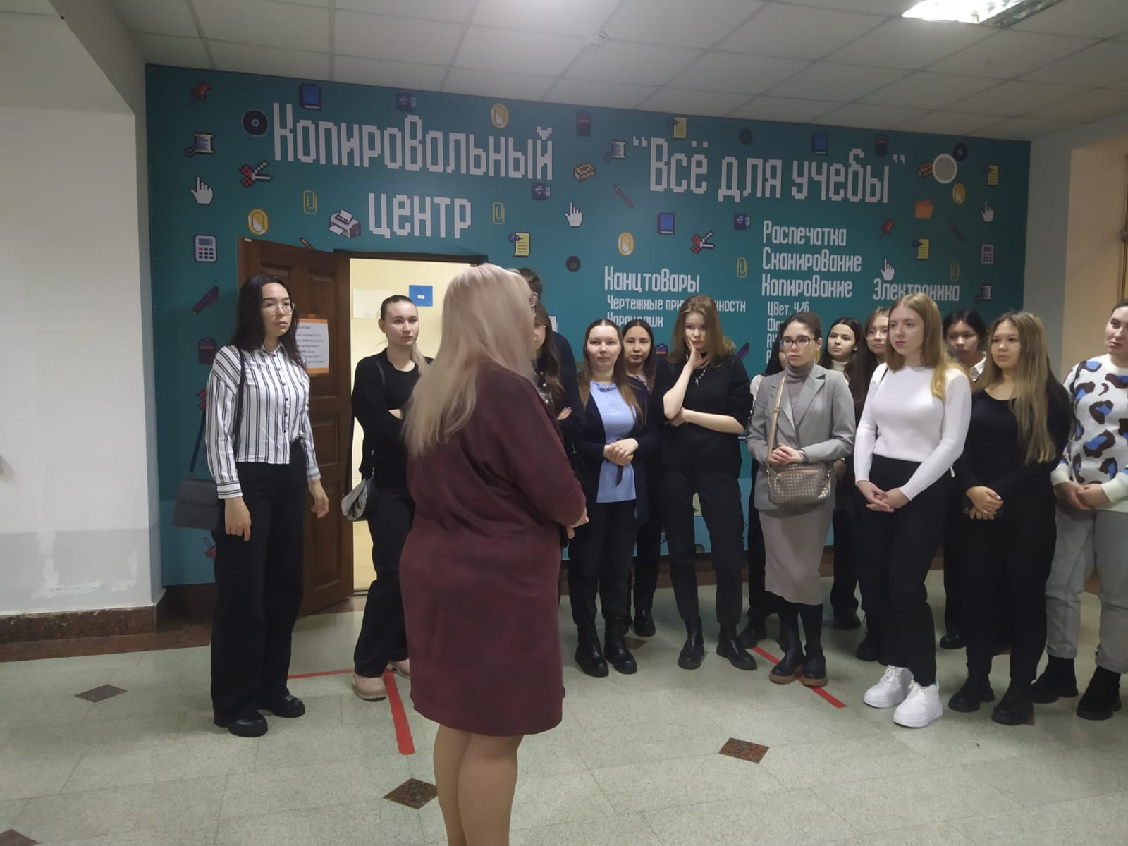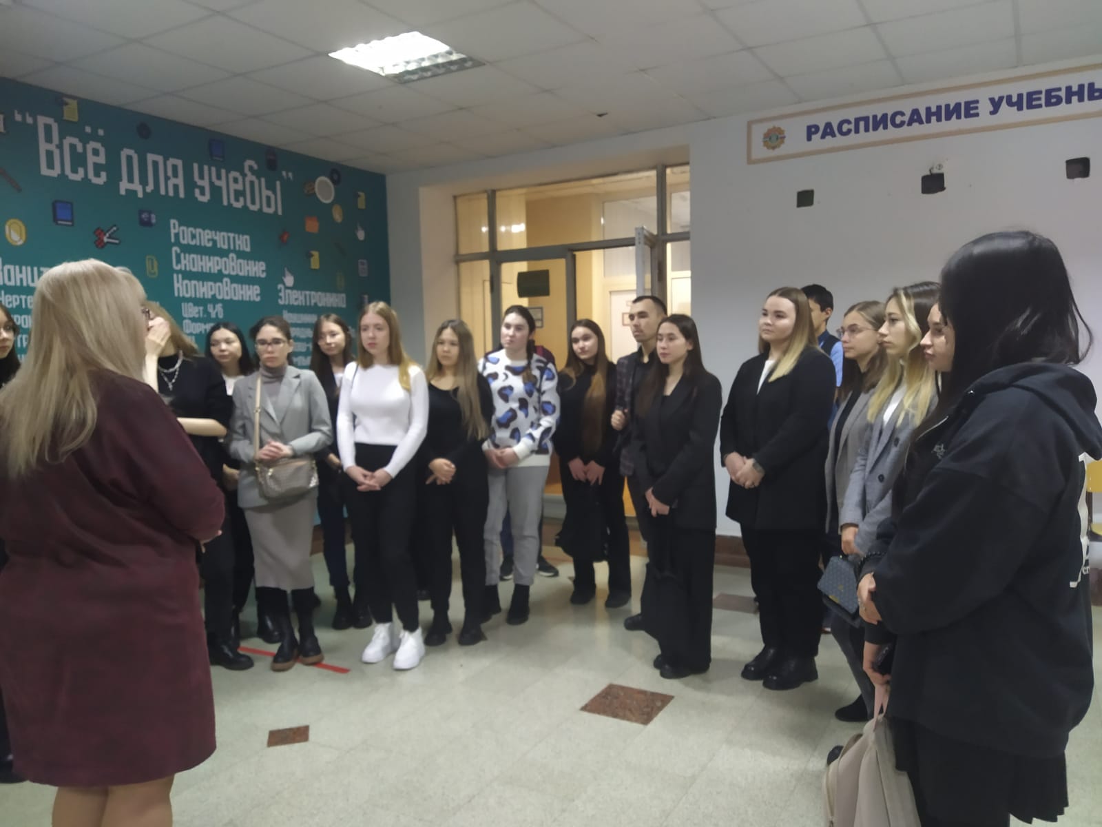 Преподаватель колледжа Схоменко Н.Н. встретила и провела увлекательную экскурсию по колледжу, ознакомила студентов с историей и жизнью колледжа. Студенты посетили занятие преподавателя колледжа, задавали вопросы.