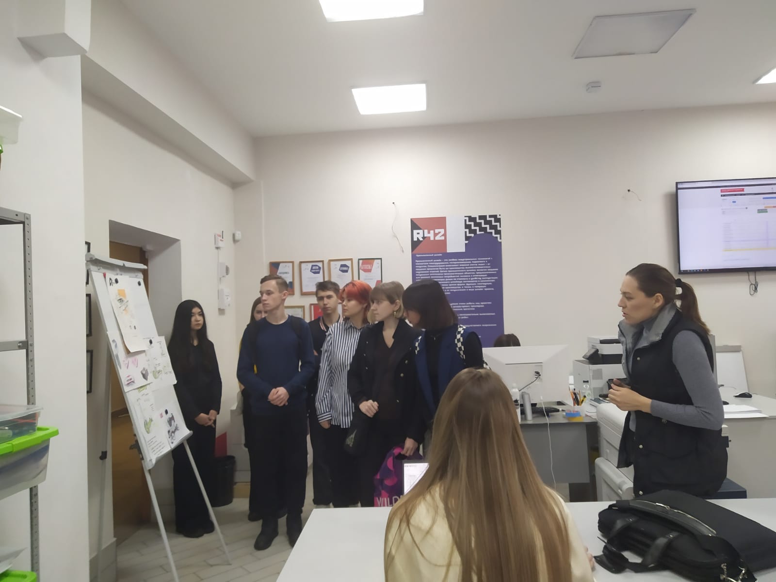 Преподаватель Самигуллина Р.Р. встретила и провела увлекательную экскурсию по колледжу, ознакомила студентов с историей и жизнью колледжа. Студенты колледжа также стали участниками открытого занятия преподавателя Самигуллиной Р.Р. Первая часть занятия включала изучение новых элементов упаковки, вторая часть - выполнение развертки упаковки и создание технических линий. Студенты задавали вопросы и преподавателю колледжа, а также пообщались и со студентами.