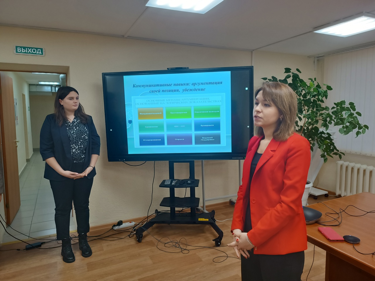 После выступлений своих преподавателей с аудиторией поработали студентки отделения Яна Мухаметьянова и Дарья Панфилова, предложив участвовать в различных тренингах и играх.