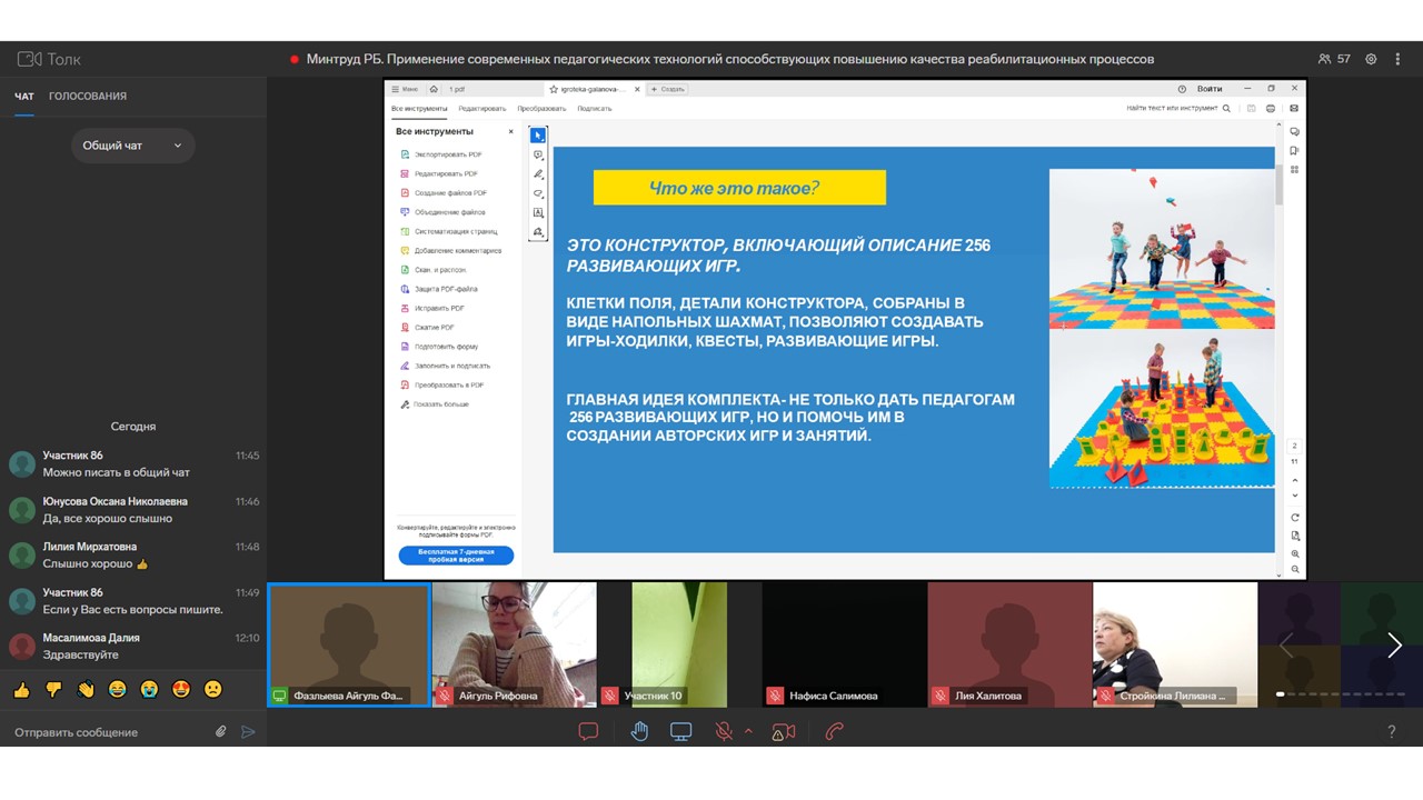 Айгуль Фаритовна рассказала о применении современных педагогических технологий, способствующих повышению качества реабилитационного процесса. В настоящее время в системе социального обслуживания детей и подростков с ОВЗ осуществляется работа, направленная на определение эффективных метрических шкал, позволяющих определить потенциал восстановительных  мероприятий.