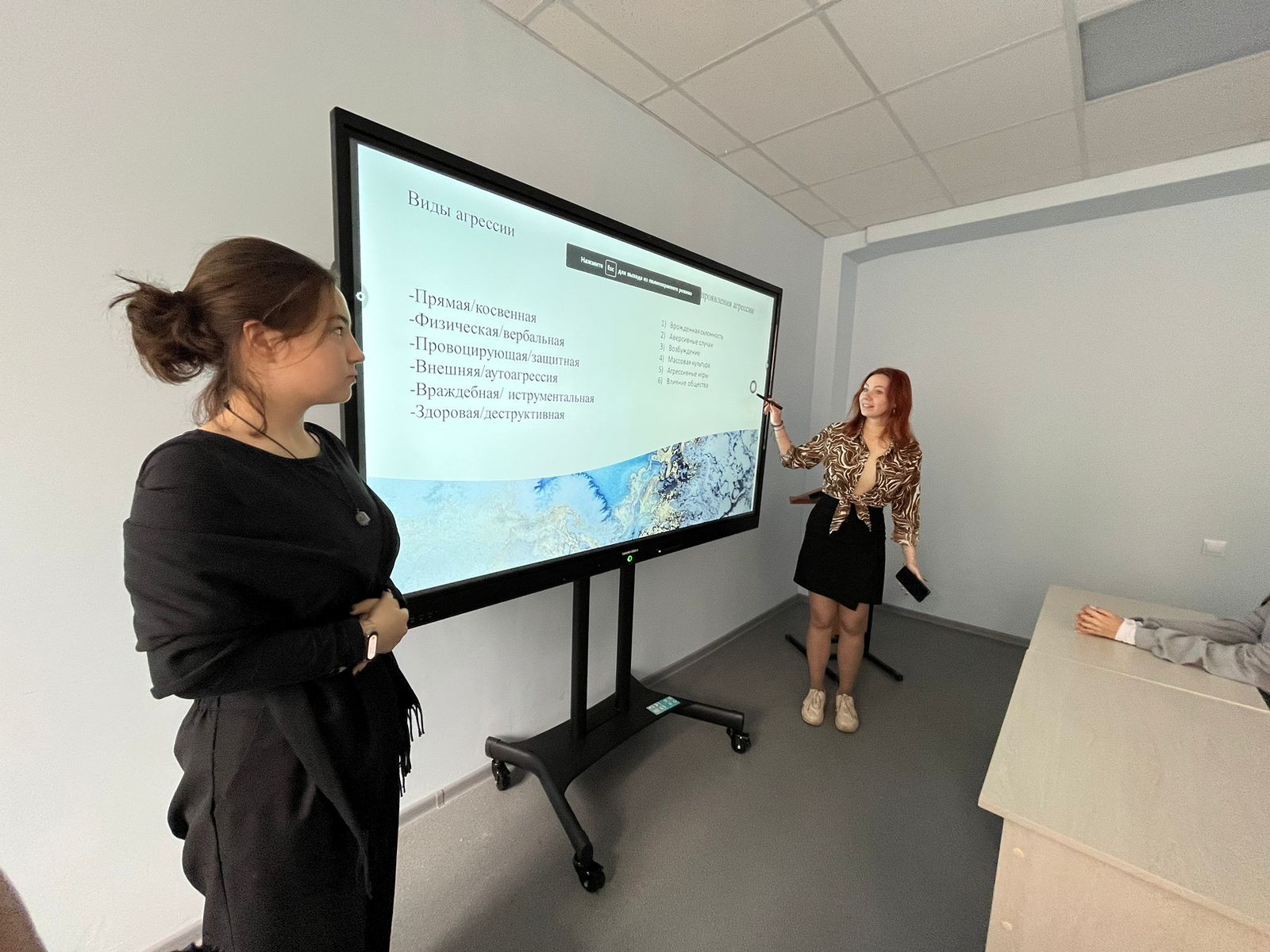 Мероприятие началось с определения понятия "агрессии". Далее студенты предложили способы "борьбы" с агрессией, были рассмотрены виды, а также компоненты её проявления.