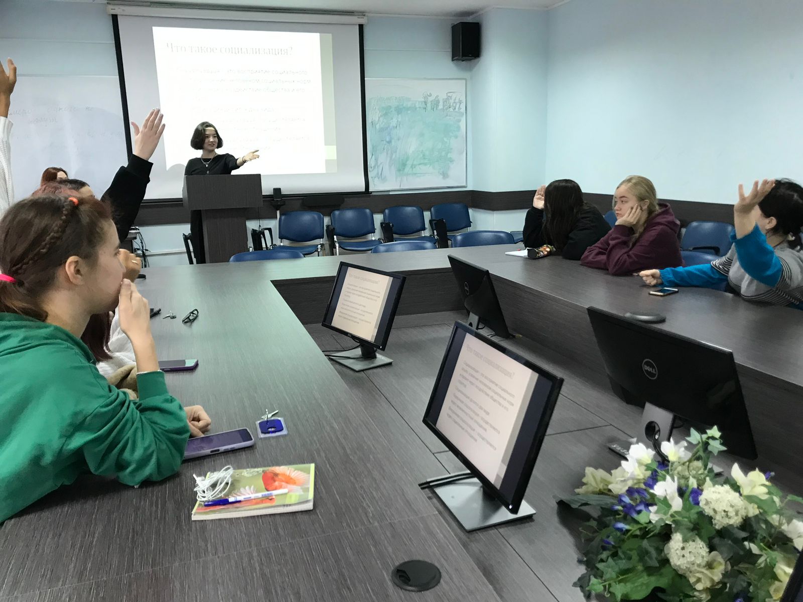 В начале мероприятия было проведено обсуждение вопроса "Что такое социализация?". Студенты активно участвовали в дискуссии, выражая свои мнения и представления о данном понятии. В результате обсуждения было сформулировано, что социализация - это процесс адаптации человека к общественным нормам и ценностям, а также овладение социальными навыками, которые необходимы для успешного функционирования в социуме.