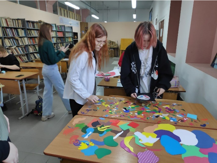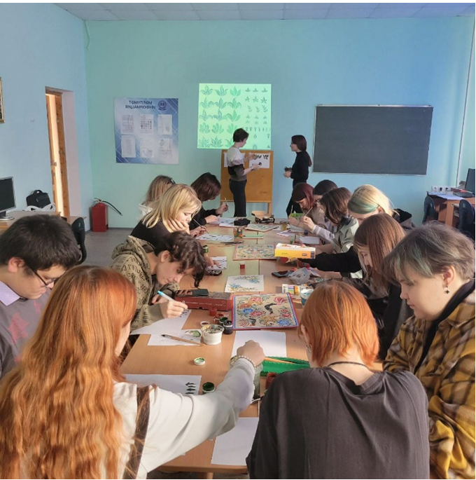 Студенты 3 курса БГПУ им.М.Акмуллы, обучающиеся на направлении Профессиональное обучение (по отраслям), направленность (профиль) «Декоративно-прикладное искусство и дизайн» в рамках производственной практики, под руководством ст.преподавателя Габидуллиной С.М., провели профориентационное занятие на тему: «Композиция как основа дизайна. Мастер-класс по созданию композиции из геометрических фигур» (Макушкина А.Ю., Уразаева Ю.А., Гаврюк О.Н.) и на тему: «Городецкая роспись» (Чернышова А.С., Алексеева В.Ю.) для обучающихся Уфимского профессионального колледжа им. Героя Советского Союза С. Бикеева. В рамках профориентационного занятия были продемонстрированы направления и профили вуза, также студенты 3 курса вуза поделились своими впечатления и рассказали, какие есть возможности у студентов, если они будут поступать в Акмуллинский университет. В том числе студенты 3 курса декоративно-прикладного искусства поделились умениями и навыками, приобретенными за время обучения в вузе: рассказали про композицию и ее влияние на изображение в дизайне, про городецкую роспись, провели небольшой мастер-класс на составление портрета человека из геометрических фигур и по элементам городецкой росписи, показали студентам учебные работы – расписные доски.