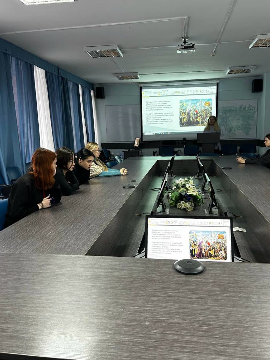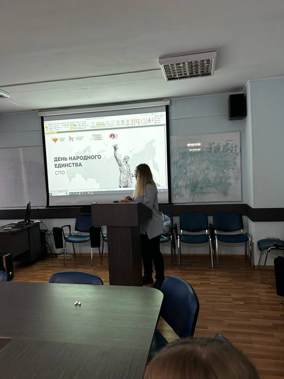 Мероприятия началось с видеоролика, в котором рассказывалось об истории нашего многонационального народа, о его языковом и культурном многообразии.Одним из основных вопросов, которые студенты обсуждали, было то, каким образом День народного единства способствует сближению и единству народа. Студенты высказали мнение, что этот праздник играет важную роль в формировании национальной идентичности и сознания людей, позволяя с гордостью и любовью относиться к истории и культуре своей многонациональной Родины.