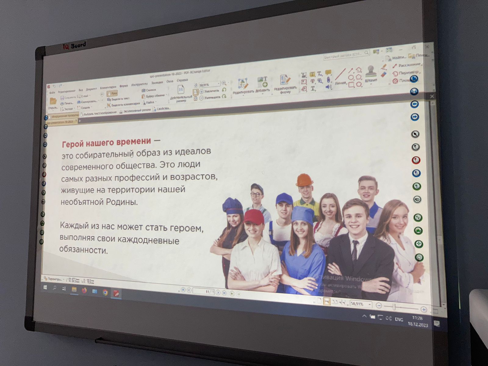 18 декабря 2023 года для студентов направления подготовки Психолого-педагогическое образование, направленность (профиль) "Психология и социальная педагогика" было проведено мероприятие в рамках Федерального проекта «Разговоры о важном» на тему «Герои нашего времени». Мероприятие было подготовлено и проведено Соломиной Анной и Гавриковой Виолеттой.