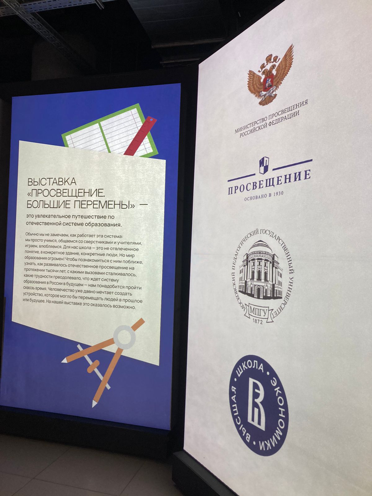 В рамках международной выставки-форума "Россия" в историческом парке «Россия – Моя история» открылась мультимедийная выставка «Просвещение. Большие перемены». Иммерсивное путешествие по ней перенесет вас на машине времени в прошлое, настоящее и будущее отечественной системы образования.