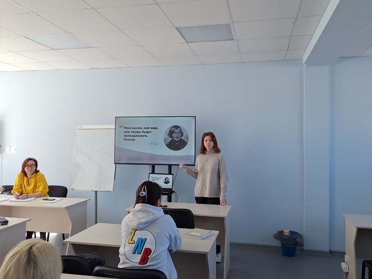 15 апреля 2024 года для студентов 1 курса направления Психолого-педагогического образования, направленность (профиль) «Психология и социальная педагогика» было проведено мероприятие в рамках проекта «Разговоры о важном» на тему: «215 лет со дня рождения Н.В.Гоголя».