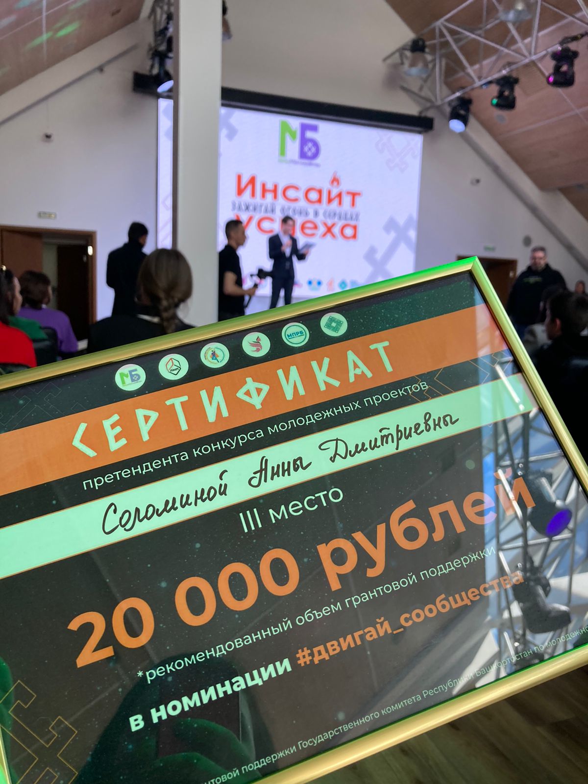 Соломина Анна стала грантообладателем в рамках молодежного фестиваля «Инсайт успеха 3.0» с проектом «Зажги семейный очаг»