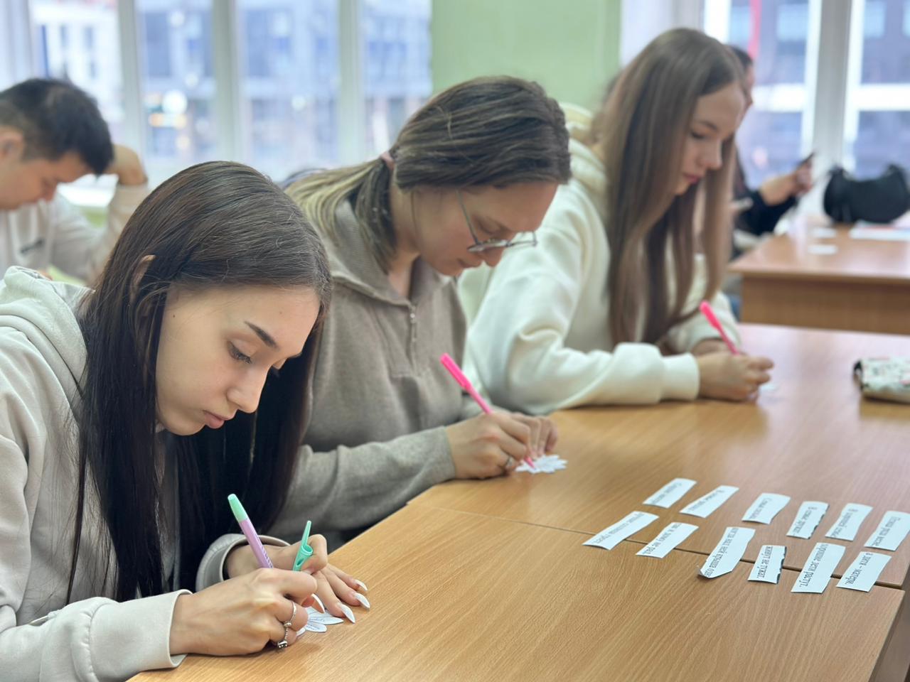 Студенты активно обсуждали важные аспекты семейных отношений, делились своими мыслями и взглядами на эту тему. В начале мероприятия они получили практическое задание — составить цитаты о семье и высказать свое мнение. Один из студентов отметил: - «Семья — это не только кровные узы, но и поддержка, которую мы даем друг другу в трудные времена». Это высказывание стало отправной точкой для дальнейших обсуждений.
