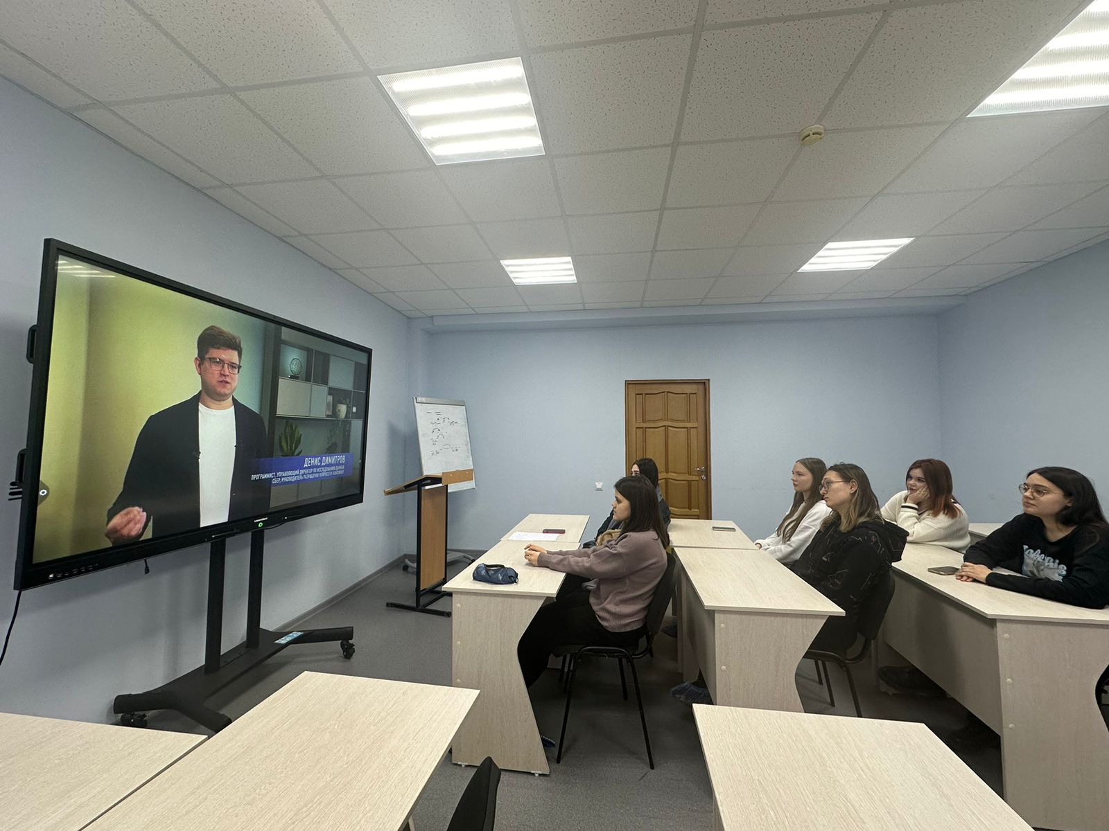 Затем участники мероприятия посмотрели видео-интервью с Денисом Димитровым, управляющим директором по исследованию данных Сбер и руководителем команды разработки нейросетей. В интервью Денис поделился своими взглядами на будущее ИИ, отметив, что технологии становятся все более интегрированными в повседневную жизнь.