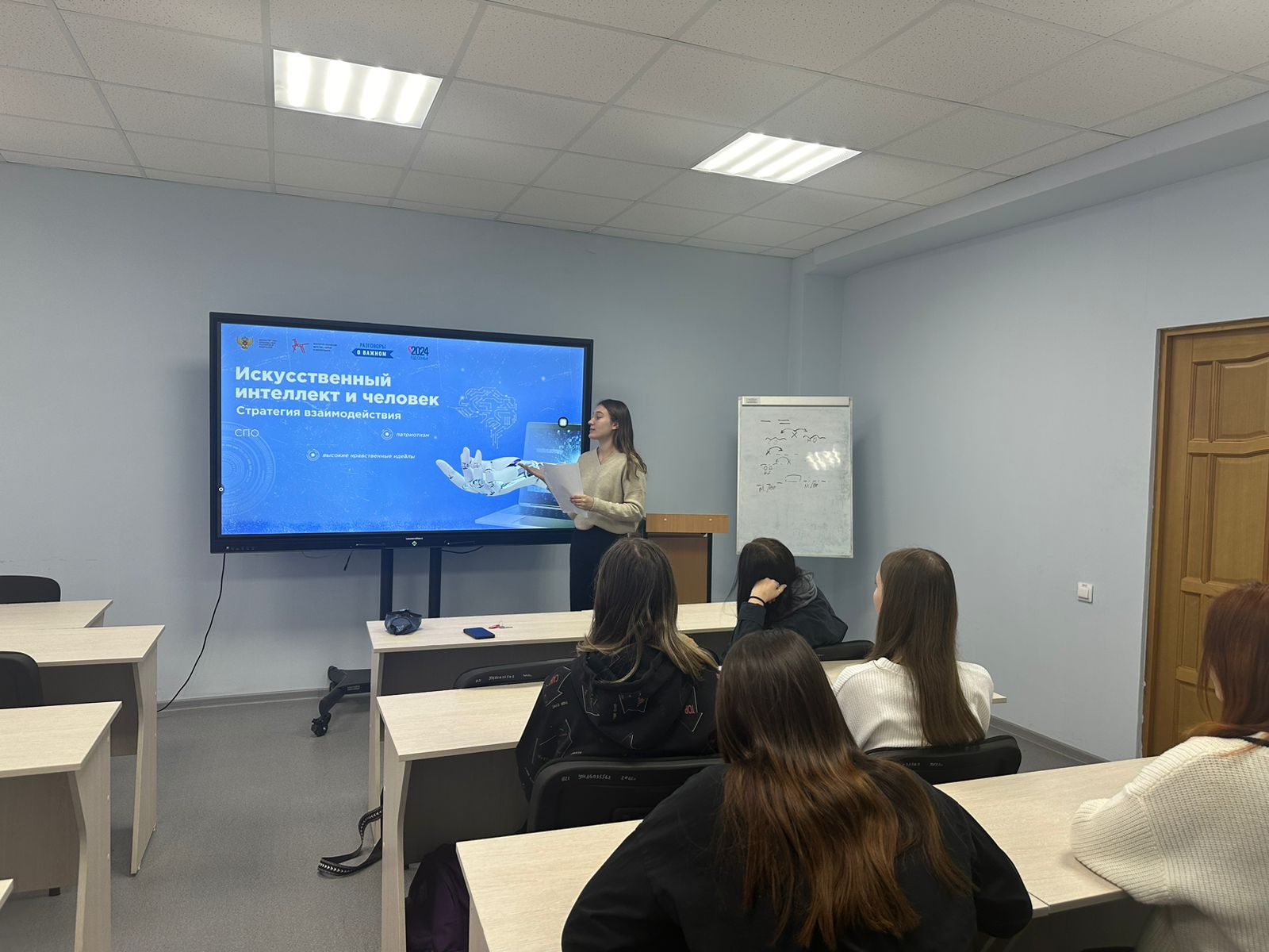 18 ноября 2024 года для студентов 3 курса направления подготовки Психолого-педагогическое образование , направленность (профиль) Психология и социальная педагогика было проведено мероприятие в рамках Федерального проекта «Разговоры о важном». Тема мероприятия: «Искусственный интеллект и человек. Стратегия взаимодействия». Мероприятие было подготовлено и проведено Гавриковой Виолеттой - студенткой 4 курса, тьютором института педагогики, под руководством Фазлыевой А.Ф.