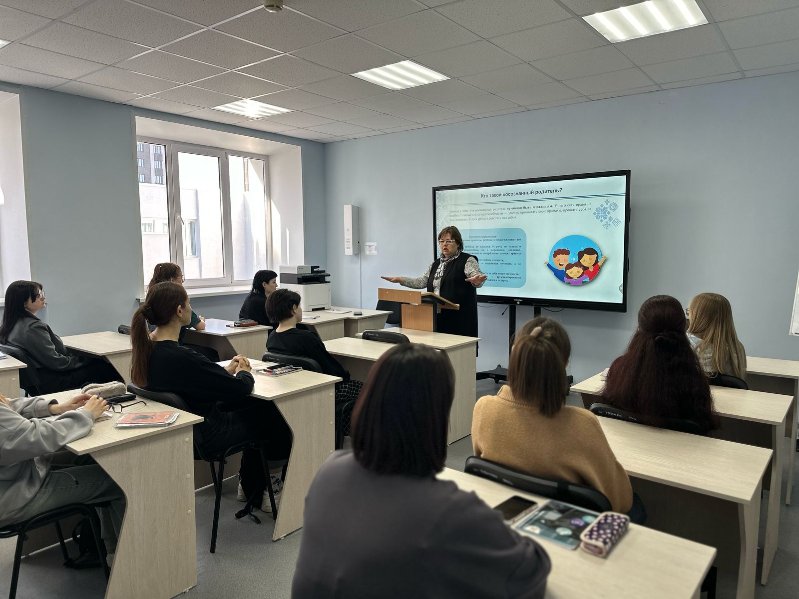 28 марта на кафедре профессионального и социального образования прошла увлекательная встреча для студентов 2 курса профиля «Психология и социальная педагогика» в рамках реализации проекта «Центр подготовки студенческой молодежи к семейной жизни «Семейный компас». Мероприятие под названием «Счастливое воспитание: управление стрессом в семейных отношениях» стало важным шагом в формировании у будущих специалистов понимания основ счастливой семейной жизни, воспитания детей и управления стрессом в семейной среде.