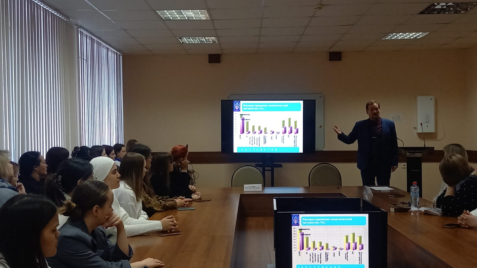 Мастер-класс начался с обсуждения актуальных проблем, связанных с распространением соматических патологий и психосоматических отклонений у подростков. А. Н. Петрынин представил график, наглядно демонстрирующий эти тенденции, а также рассказал о различиях в уровнях гормонов у мальчиков и девочек с нормосообразным и девиантным поведением.