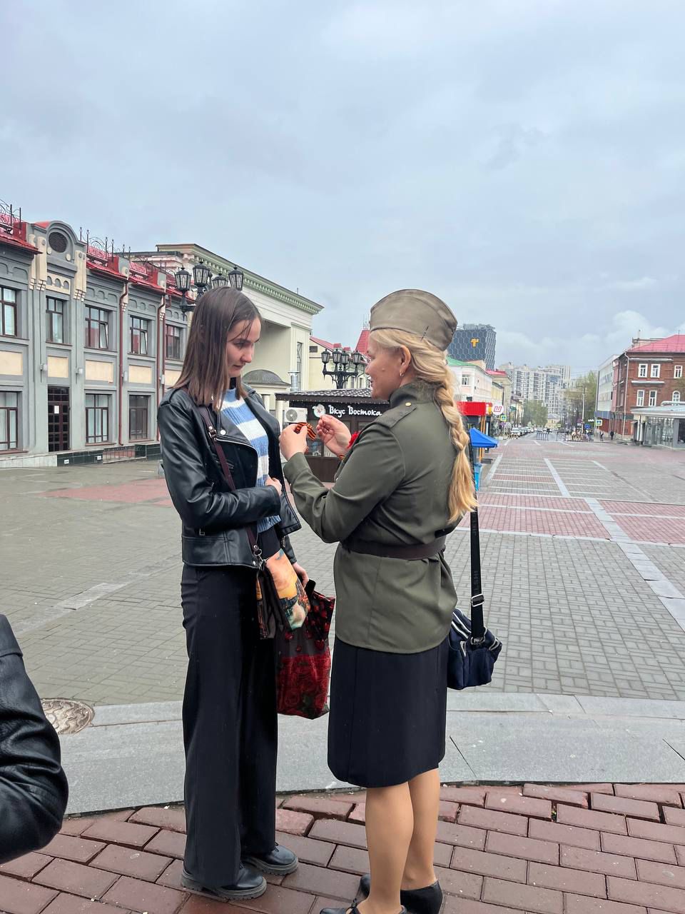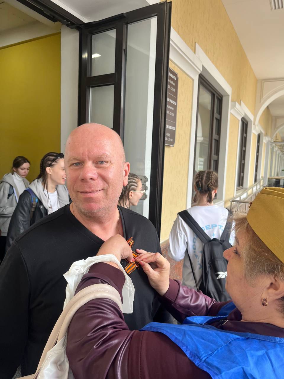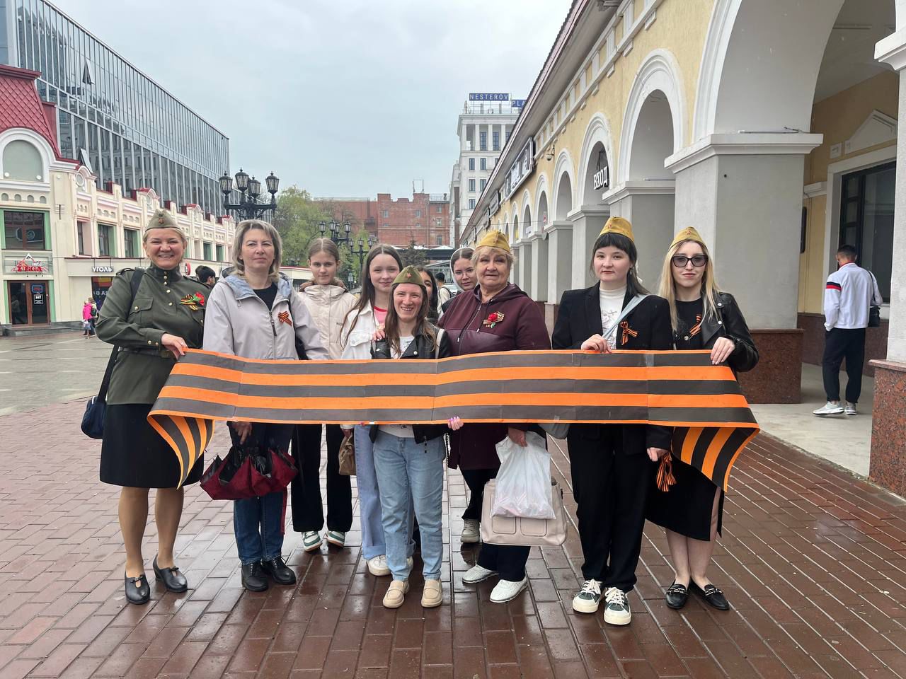В этот день студенты совместно с преподавателем, руководителем и сотрудниками молодежного клуба «Точка притяжения» вышли на улицы города, чтобы раздать георгиевские ленты всем желающим. Каждая лента, прикрепленная к одежде, стала не просто украшением, но и напоминанием о том, что мы должны помнить о тех, кто отдал свою жизнь за нашу свободу.