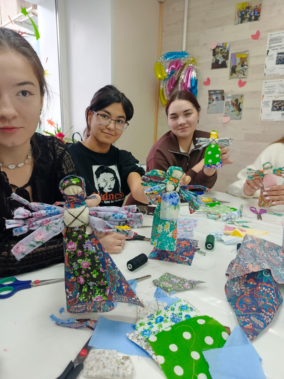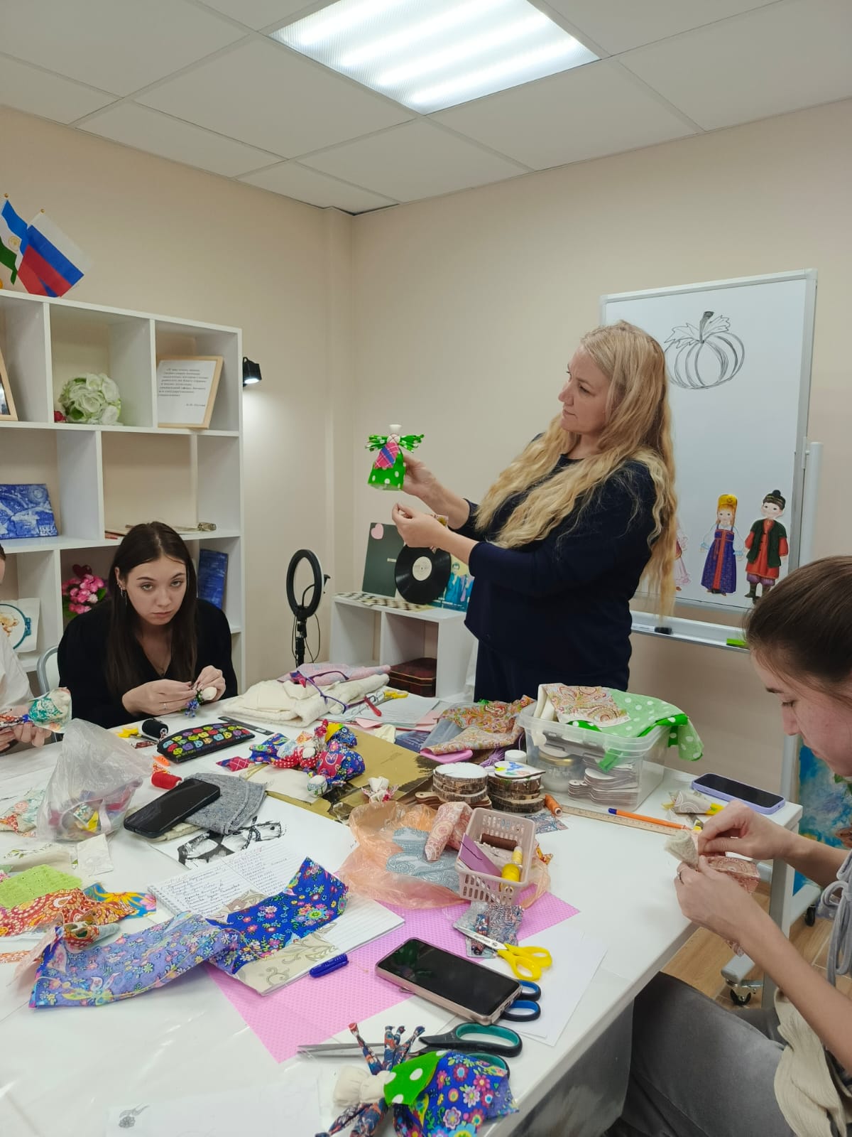 Под чутким руководством Елены Геннадьевны, руководителем молодежного клуба "Точка притяжение", участники мастер-класса своими руками создавали своих куколок, вкладывая в них не только умение, но и добрые мысли и пожелания. Работа с натуральными тканями, нитями и традиционными техниками позволила каждому почувствовать связь с прошлым и исконной народной культурой.