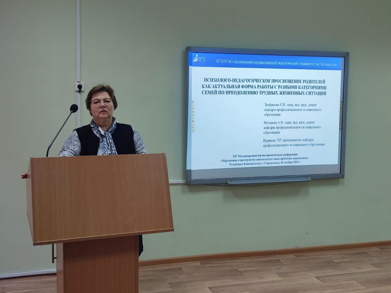 В рамках реализации государственного задания ФГБОУ ВО БГПУ им. М.Акмуллы по разработке модели родительского просвещения в учреждениях начального и основного общего образования,  31 октября 2025 г. кафедр профессионального и социального образования БГПУ им. М.Акмуллы приняла участие в XIV Международная научно-практическая конференция «Образование в пространстве школы и вуза: опыт, проблемы, перспективы» (Стерлитамакский филиал УУНиТ).