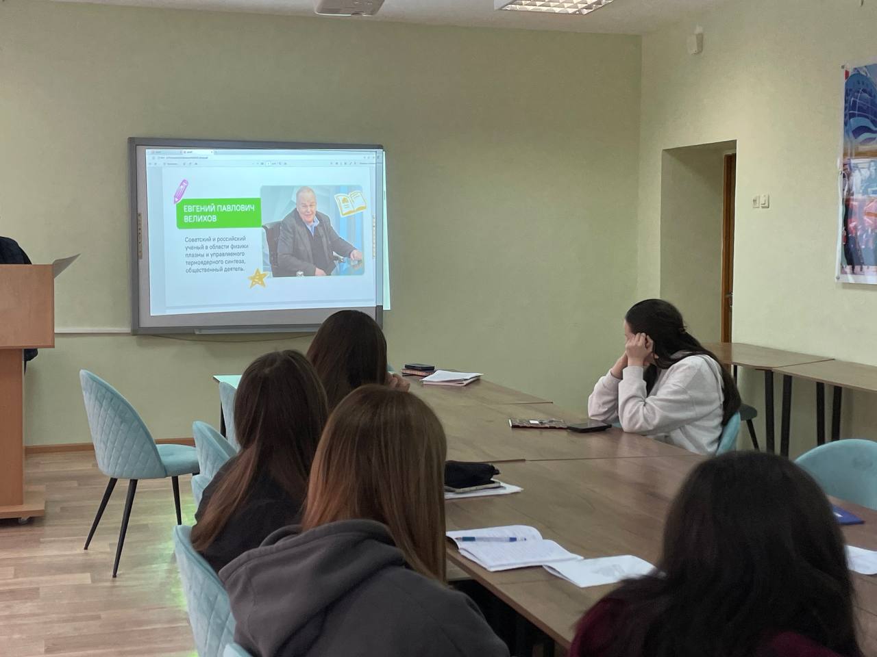 В рамках мероприятия студенты обсудили роль науки в современном обществе, её связь с патриотизмом и созидательным трудом. Особое внимание было уделено выдающимся российским учёным, таким как Е.П. Велихов, а также масштабным научным проектам — международному термоядерному реактору ИТЭР, токамаку Т-15МД, коллайдеру NICA и синхротрону СКИФ.