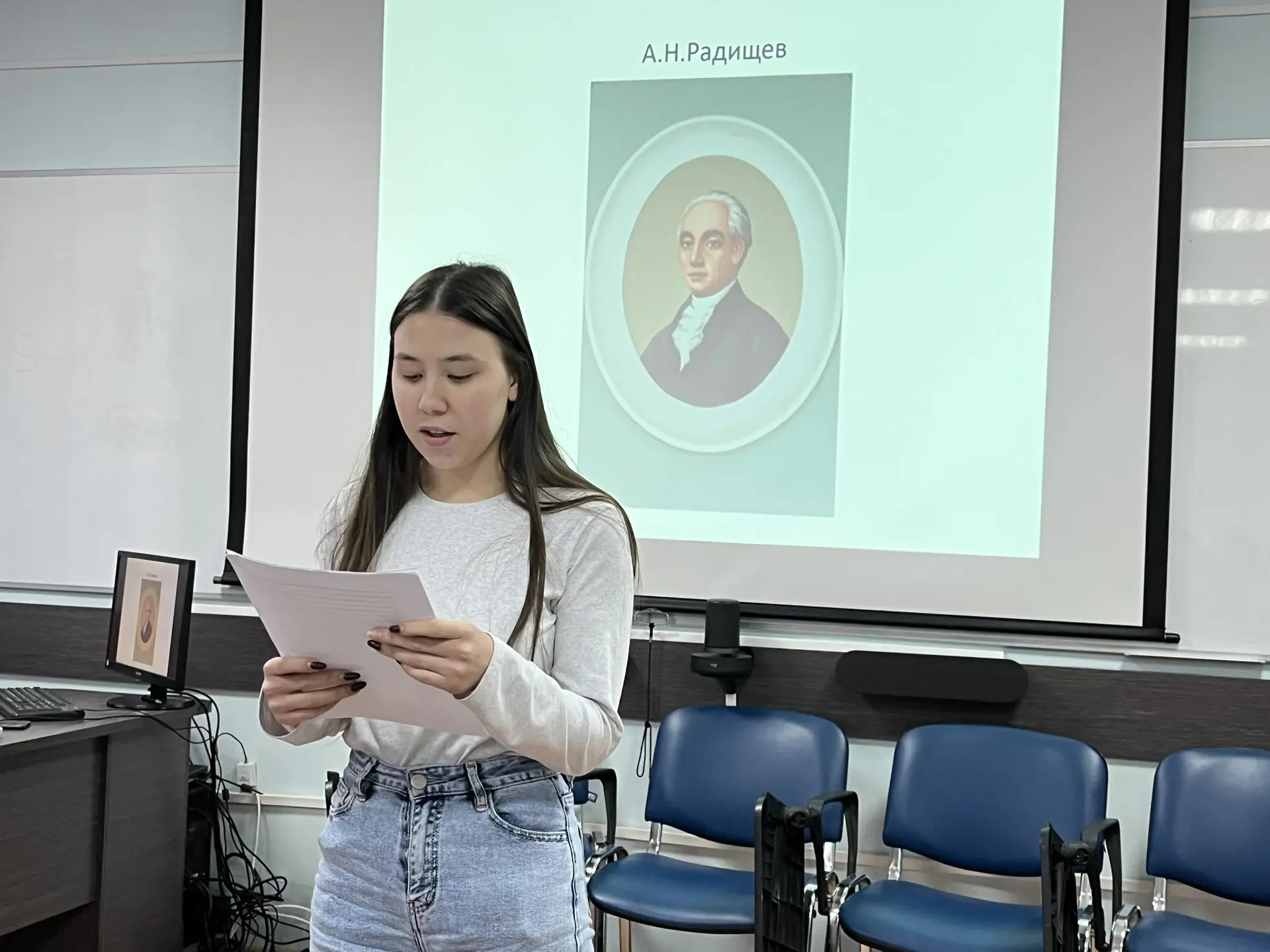 Студенты первокурсники представили доклады о великих педагогах и мыслителях, чьи идеи формируют личность: рассказали об Антоне Макаренко и дисциплине через коллектив; познакомили с психологией подвига Льва Выготского; напомнили о гражданском мужестве Александра Радищева; и завершили  цикл рассказом о Льве Толстом как о народном педагоге.
