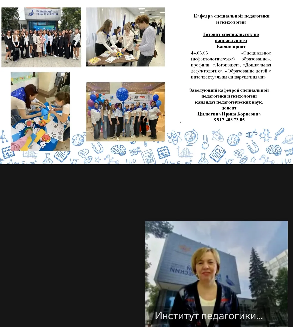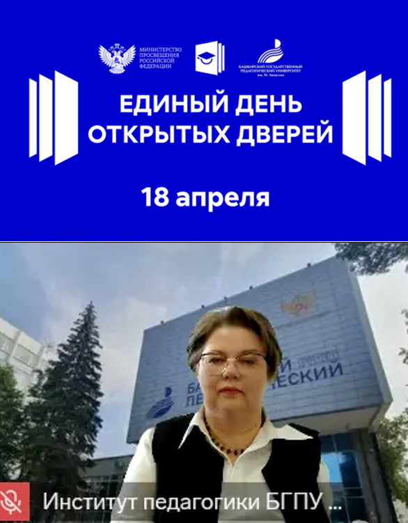 18 апреля 2026 года в БГПУ им.М.Акмуллы прошёл День открытых дверей. Кафедра профессионального и социального образования презентовала направления и профили обучения в рамках онлайн-подключения с педагогическими колледжами города Уфы и Республики Башкортостан. Целевая аудитория - студенты выпускных групп колледжей, их родители, кураторы групп. Во время летней приёмной кампании выпускникам предстоит сделать выбор направления своего дальнейшего обучения на бакалавриате в вузе.