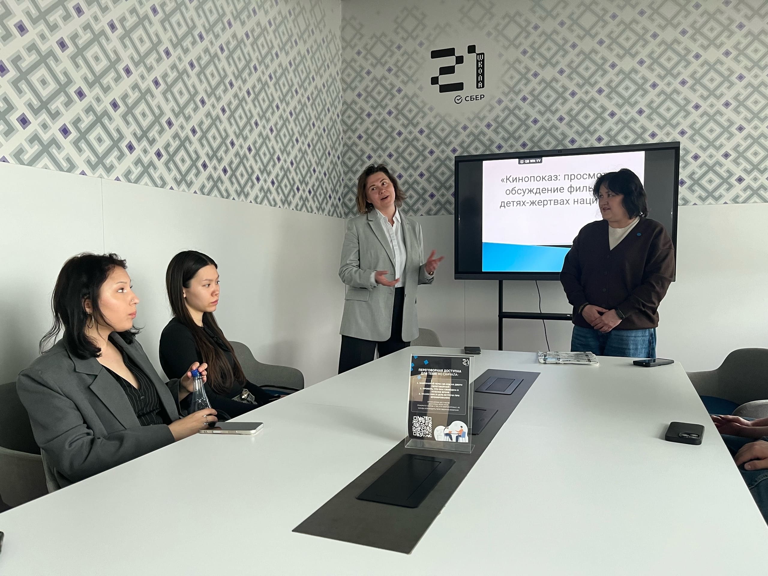 На базе образовательной платформы «Школа Сбербанк 21» прошло республиканское межвузовское воспитательное мероприятие «Кинопоказ: просмотр и обсуждение фильма о детях-жертвах нацизма»