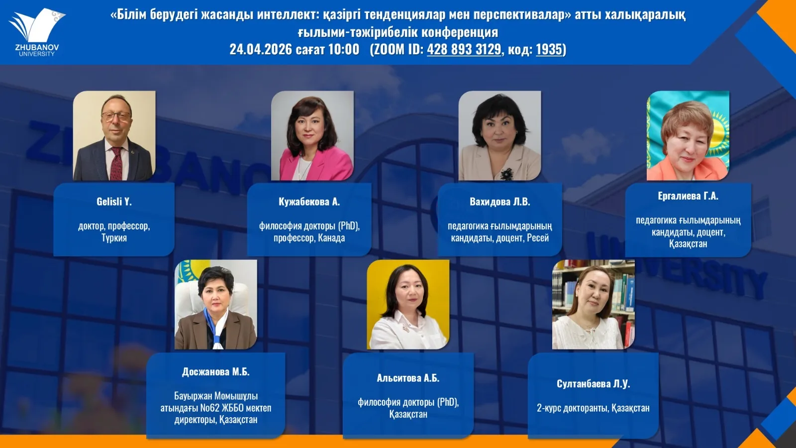 24 апреля 2026 года в Актюбинском региональном университете имени К. Жубанова состоялась международная научно-практическая конференция «Искусственный интеллект в образовании: современные тенденции и перспективы». Мероприятие собрало ведущих учёных, педагогов и экспертов из разных стран, объединив их вокруг одной из самых актуальных тем современности — интеграции искусственного интеллекта в образовательный процесс.